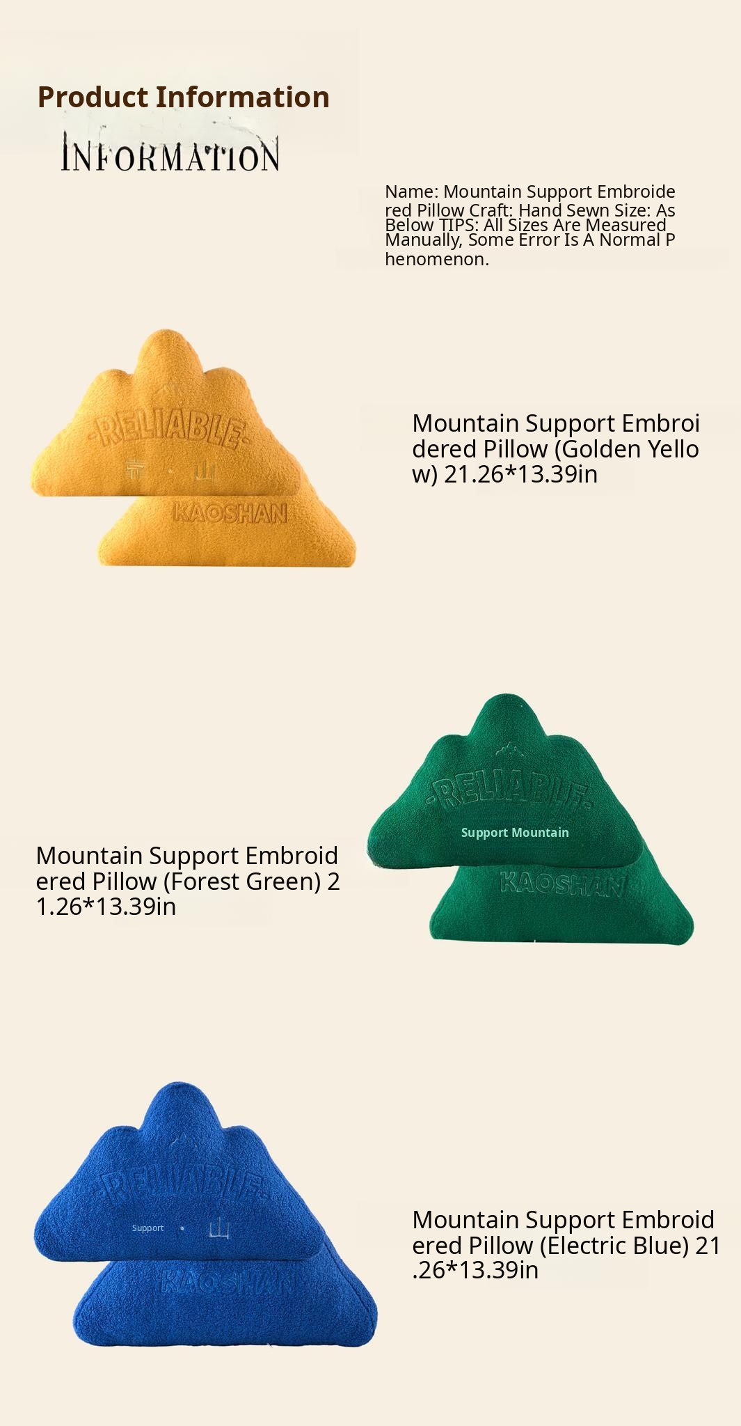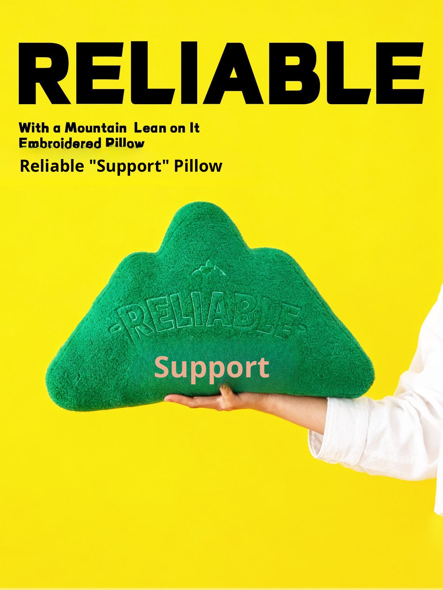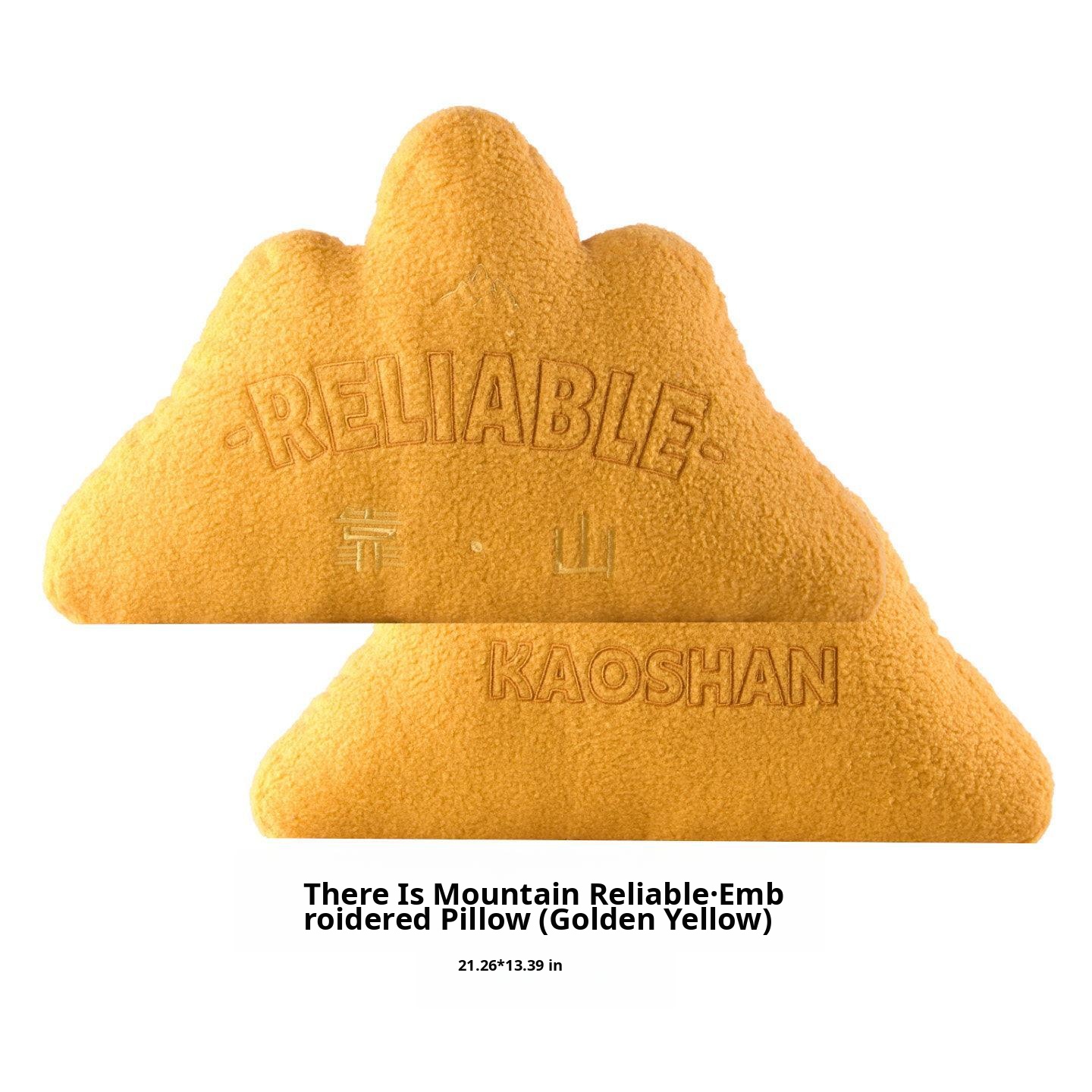 Embroidered Throw Pillow - "Reliable Mountain" Design - Golden Yellow