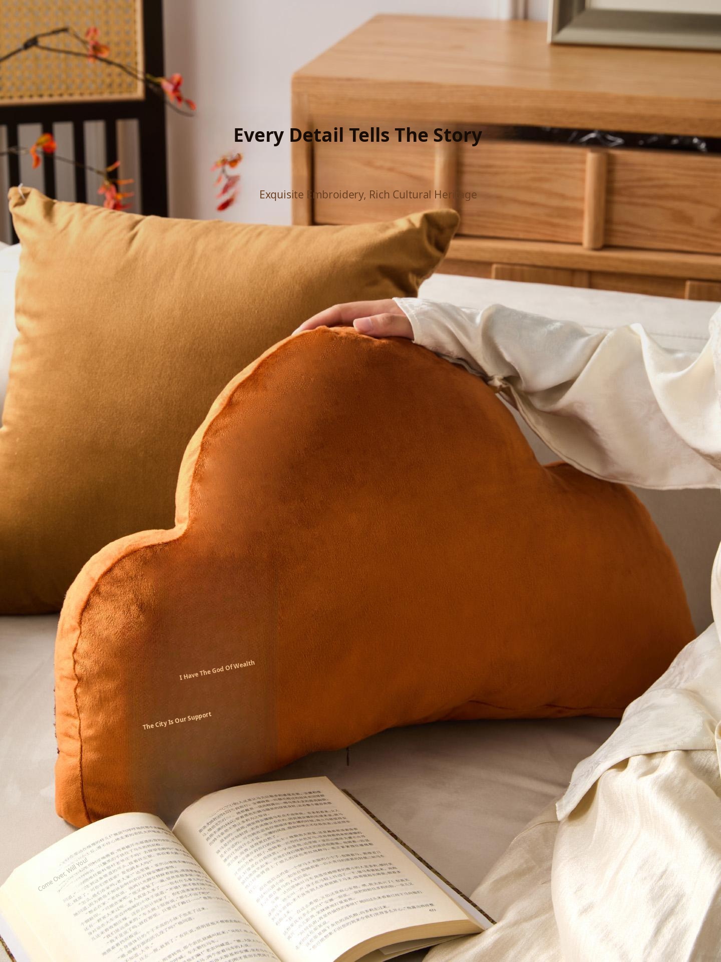 New Chinese Style Unique Shaped Backrest Pillow - Ergonomic Office Chair Cushion with Mountain Design for Car Use, Embroidered Support Pillow for Comfort and Style