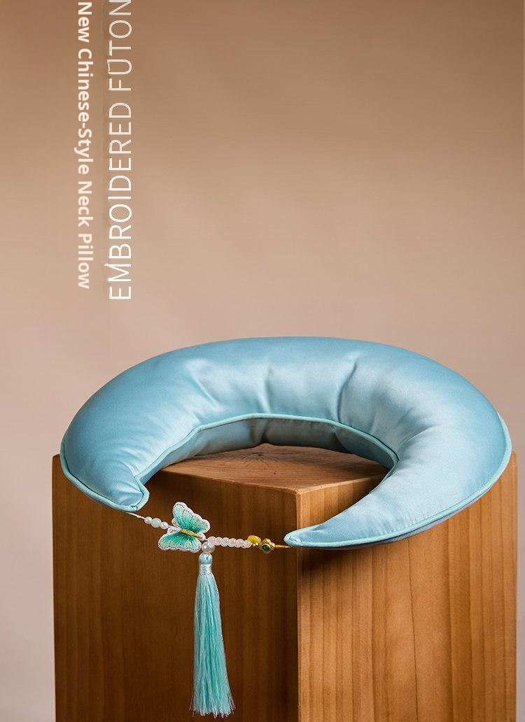 New Chinese-style Moon-shaped Pillow - Ultimate Neck Support for Long Sitting at Work, Ergonomic Neck Pillow for Office Use, Unique Contoured Design for Neck and Back Comfort