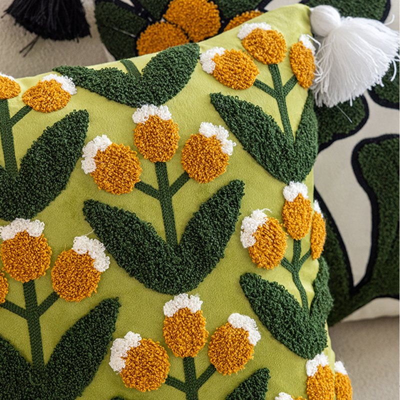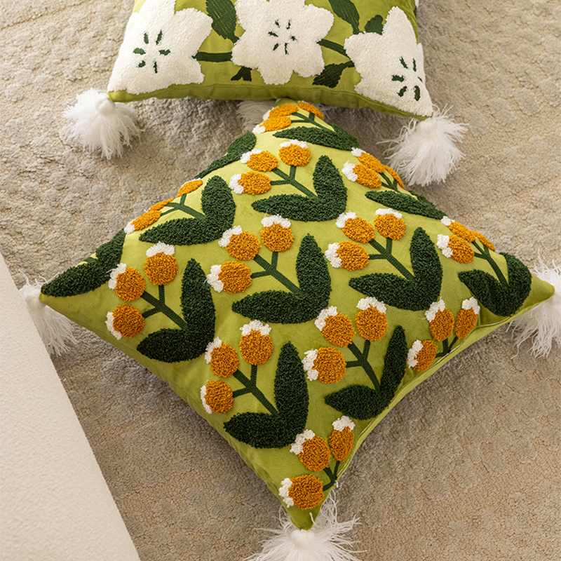 Green Leaf Fruit Towel Embroidered Pillow