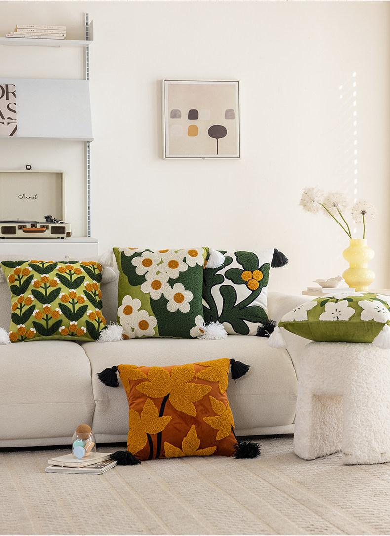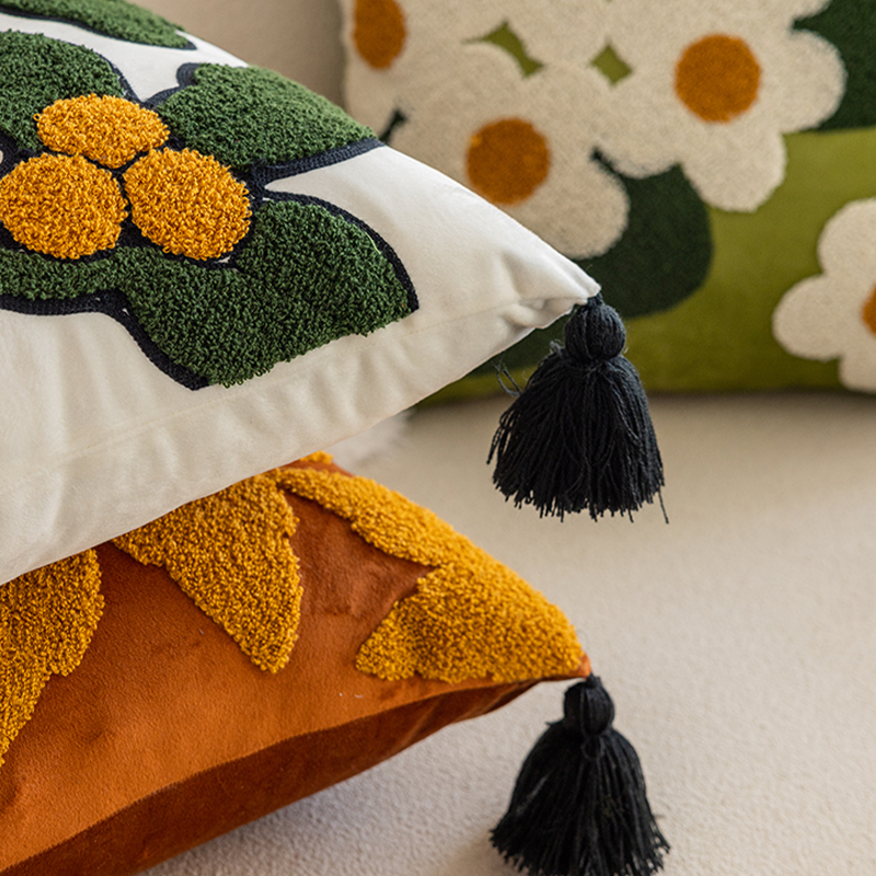 Bright Autumn Cherry Blossom Embroidered Throw Pillow