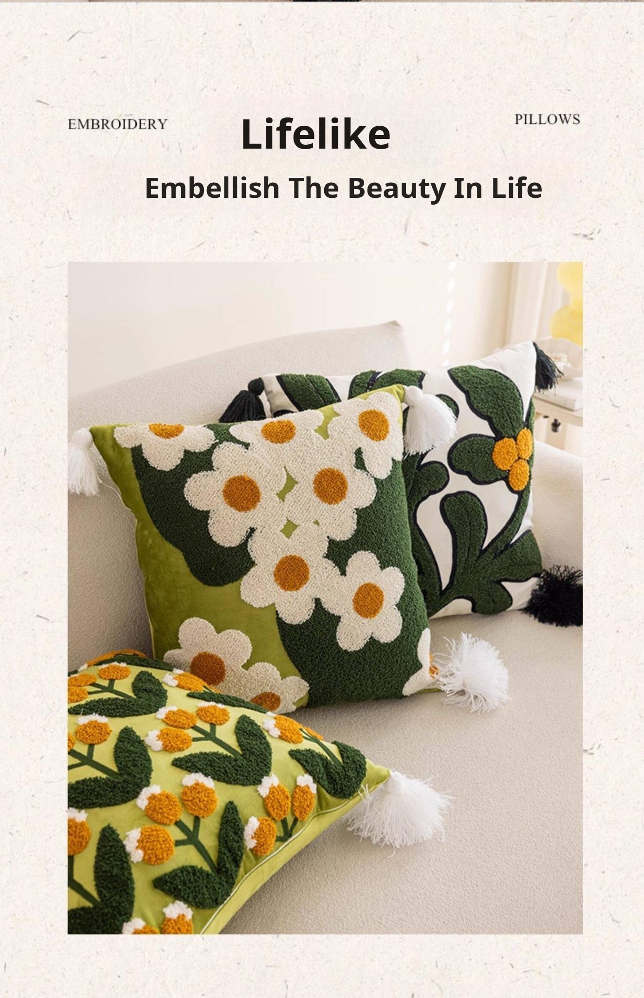 Garden Romance Towel Embroidered Throw Pillow