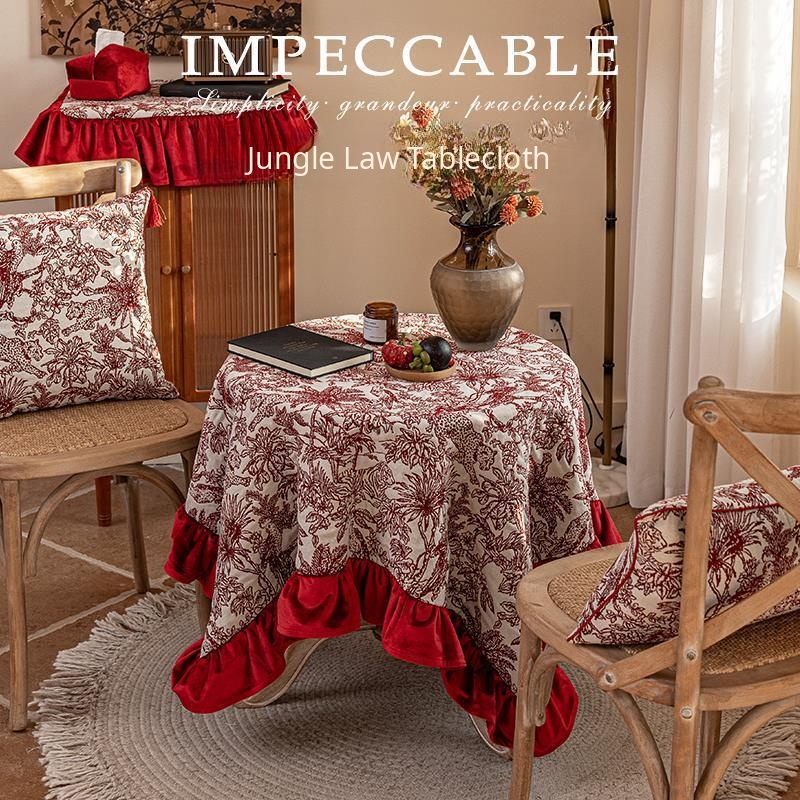 Elegant New Chinese Style Tablecloth for Festive Dining - Vintage French-Inspired Design, Luxury High-End Aesthetic for New Year Celebrations and Stylish Tea Tables.