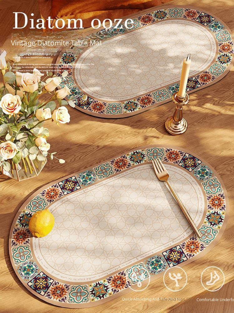 Vintage American Oval Placemats - Waterproof, Oil-Resistant, and Easy-Clean Dining Pads for Home Use - Perfect for Dishes, Bowls, and Cutlery.
