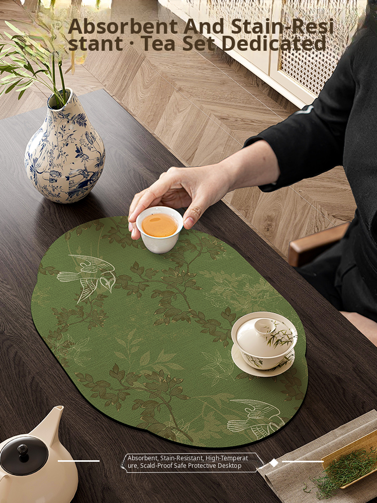New Chinese Style Quick-Drying Absorbent Tea Table Runner - Heat-Resistant Mat for Tea Drinking, Perfect for Your Study or Living Room with Cup Coasters Included