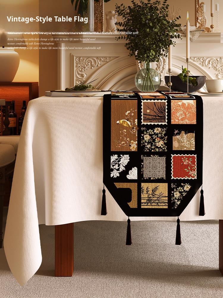 French Vintage Rectangular Table Runner - Elegant Waterproof and Oil-Resistant Tablecloth for American Style, Perfect for Dressers, Shoe Cabinets, and Coffee Tables - Premium Dust-Proof Fabric for a Chic Look