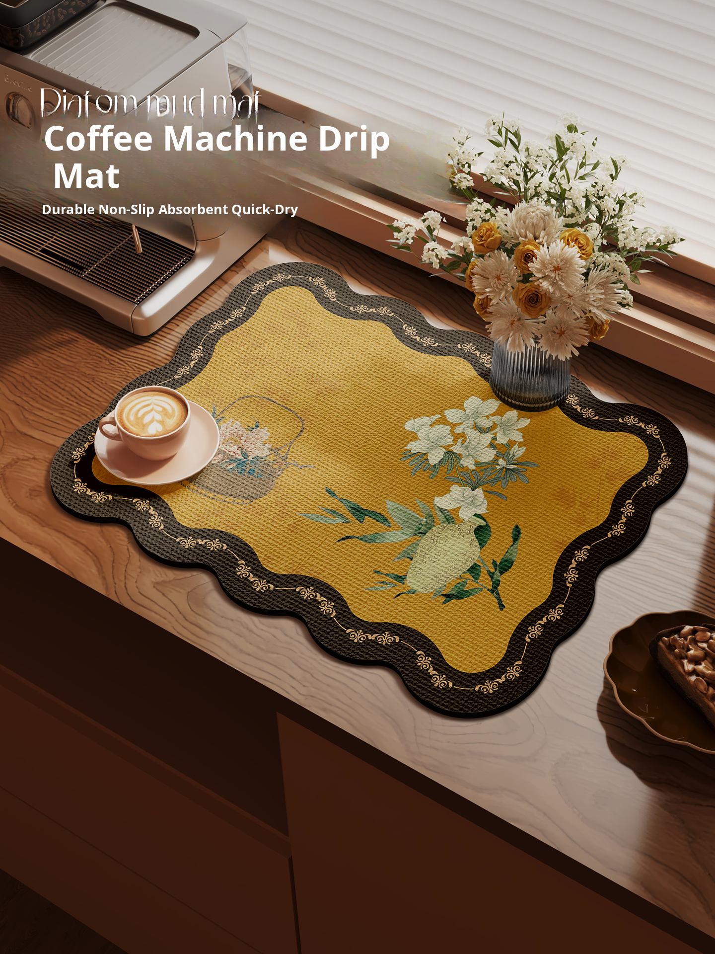 French Vintage Style Absorbent Coffee Machine Mat - Kitchen Countertop Dish Mat, Heat-Resistant Bar and Table Mat, Perfect for Home Decor and Practical Use