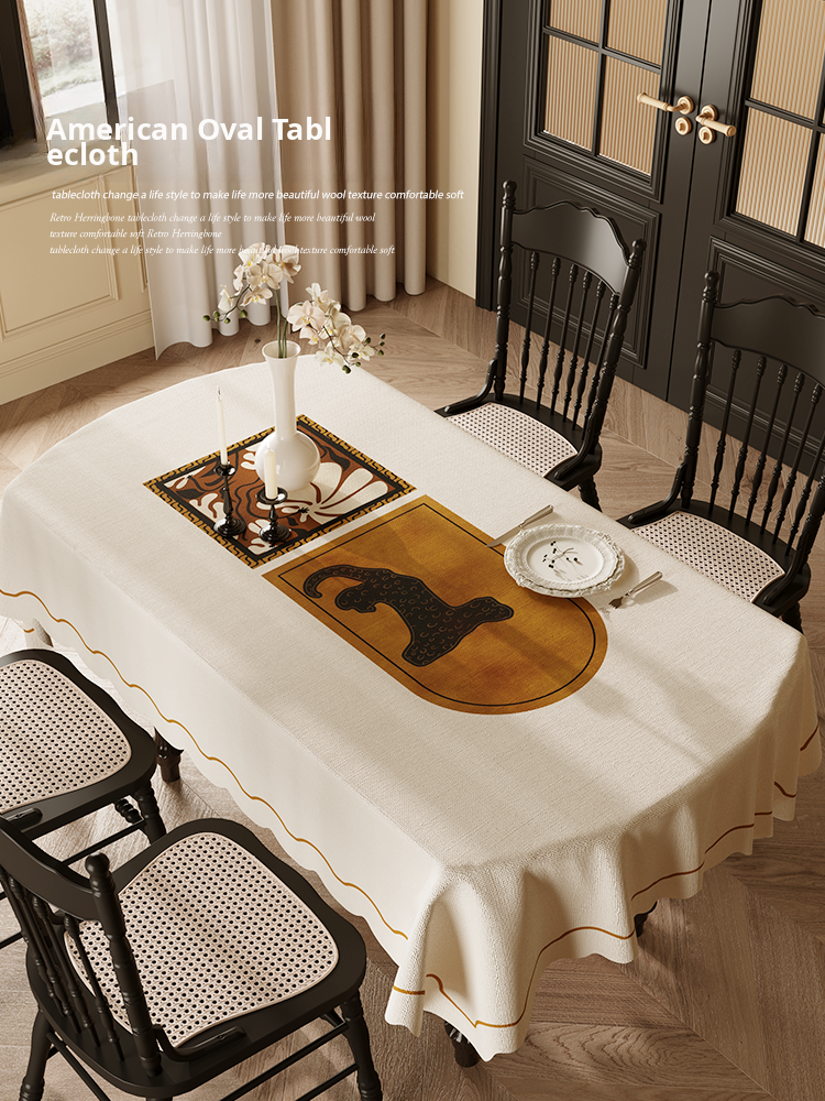 Vintage Oval Dining Table Cloth - Waterproof, Oil-Proof, Easy-Clean Rectangle Table Mat for Retro American Style Coffee Tables, Perfect for Home Decor