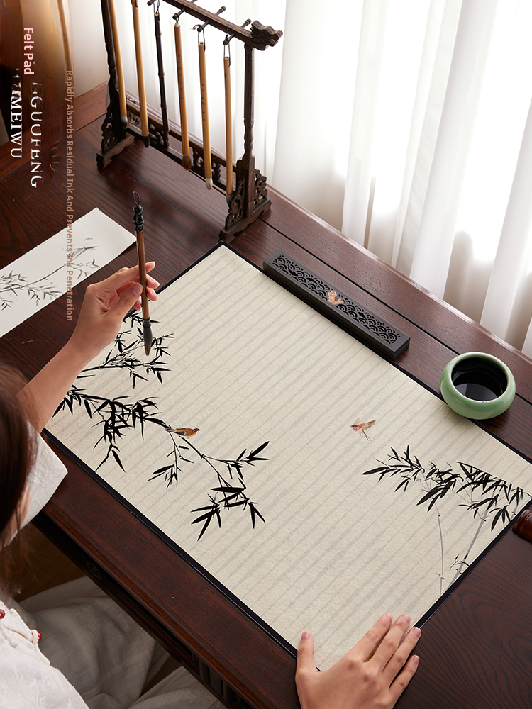 New Chinese Style Felt Mat - Zen-Inspired Calligraphy and Writing Pad for Elementary Students, Perfect for Practice and Artwork, Ideal Desk Cover for Writing and Painting