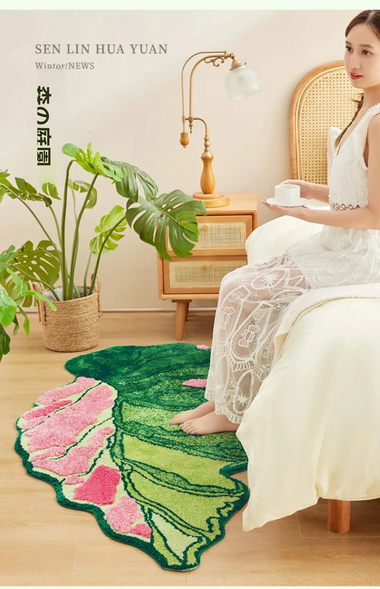 2026年新作!アート感あふれる不規則な形状のモスガーデンラグ - ベッドサイドやリビングに最適!おしゃれで立体的なデザインで、お部屋を一新しませんか?快適さと美しさを兼ね備えた魅力的なカーペットです。