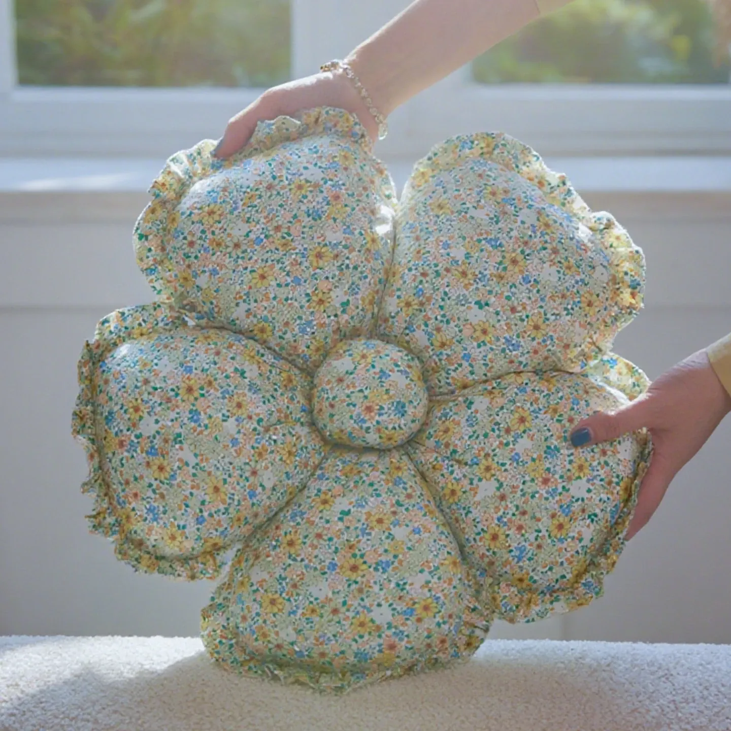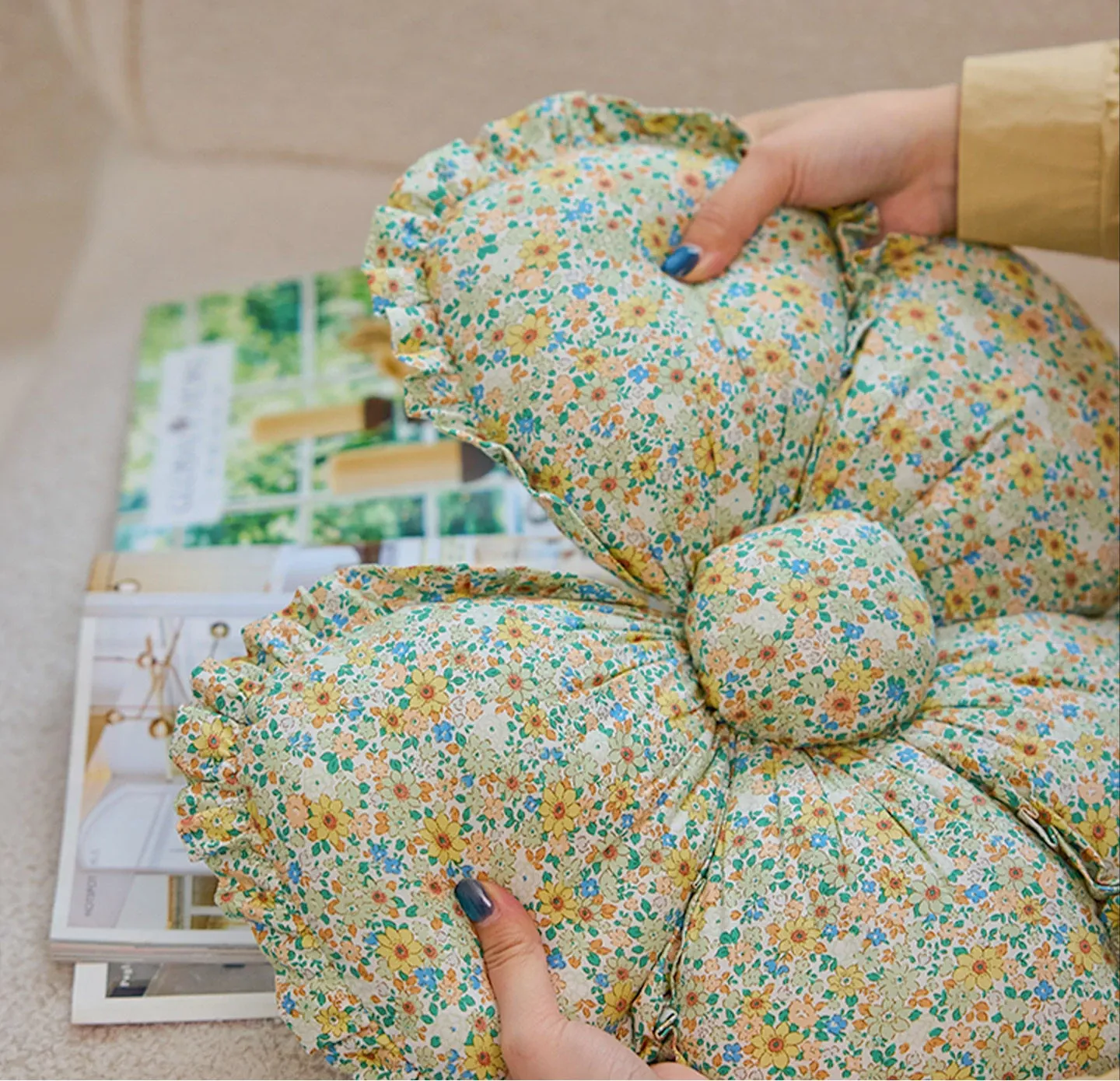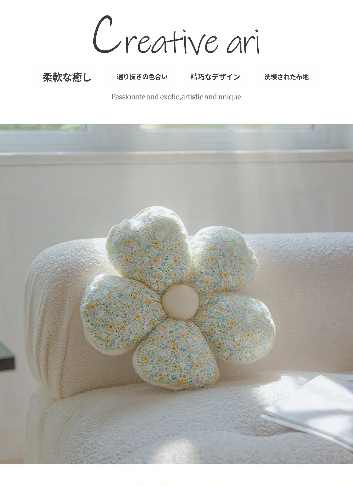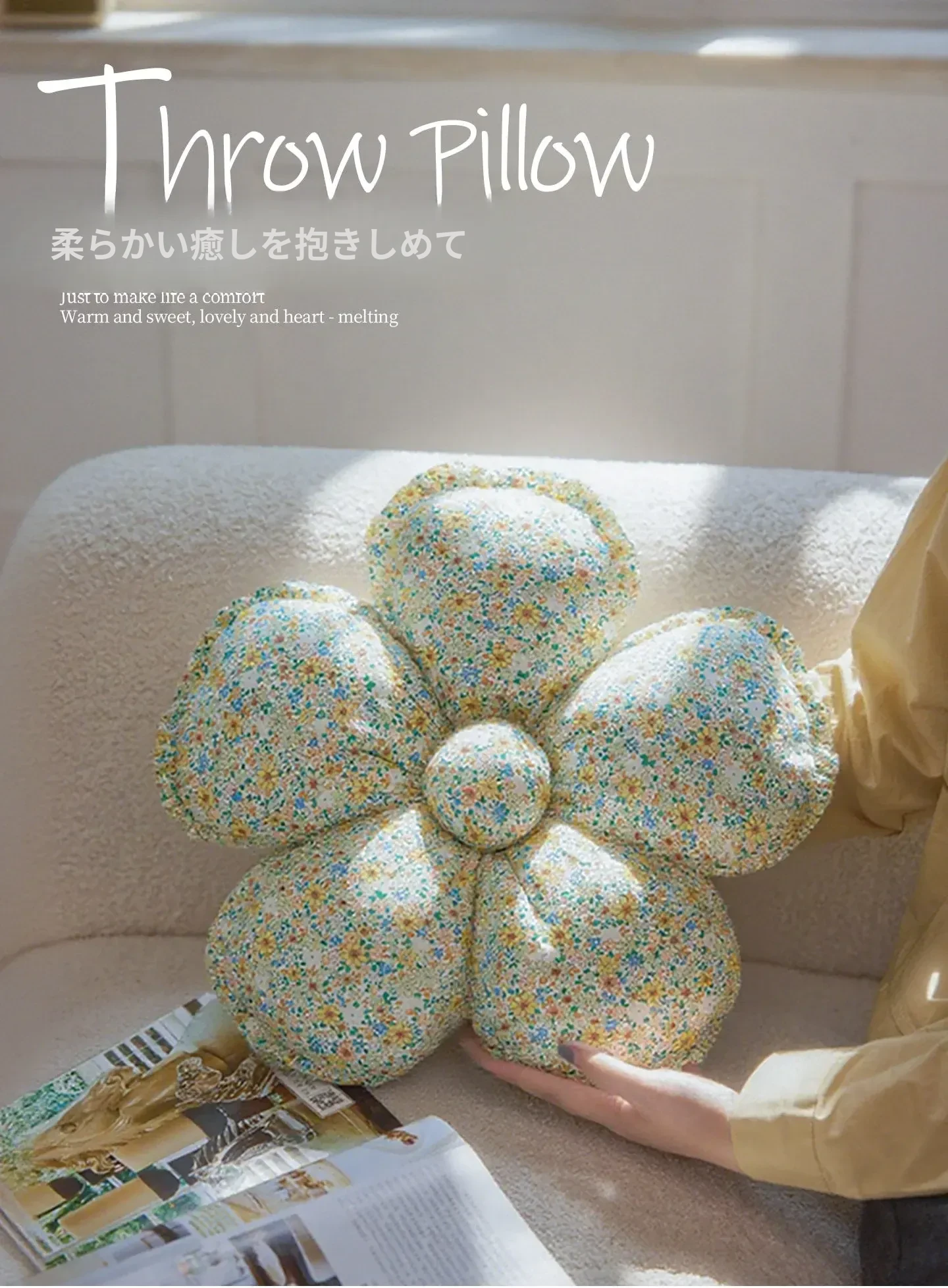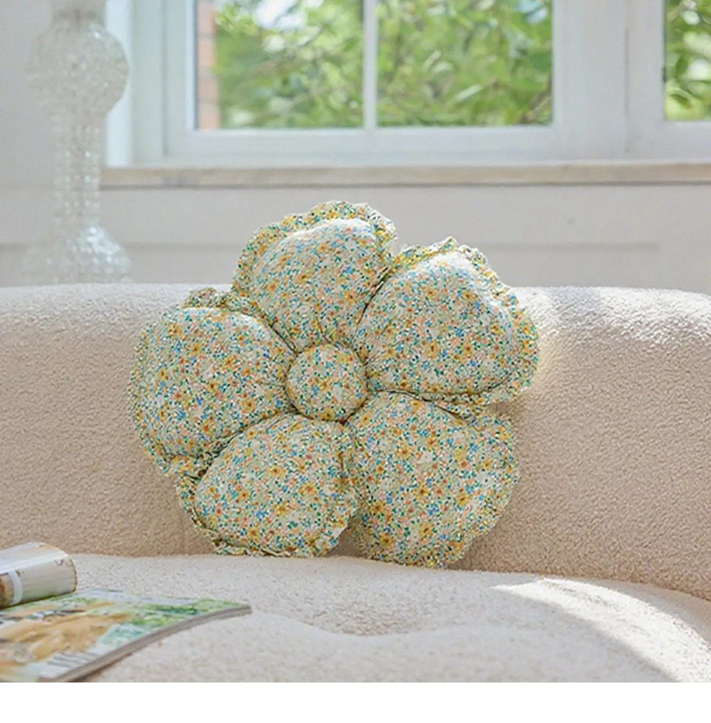 フラワー星型パターン布製クッション - 異形