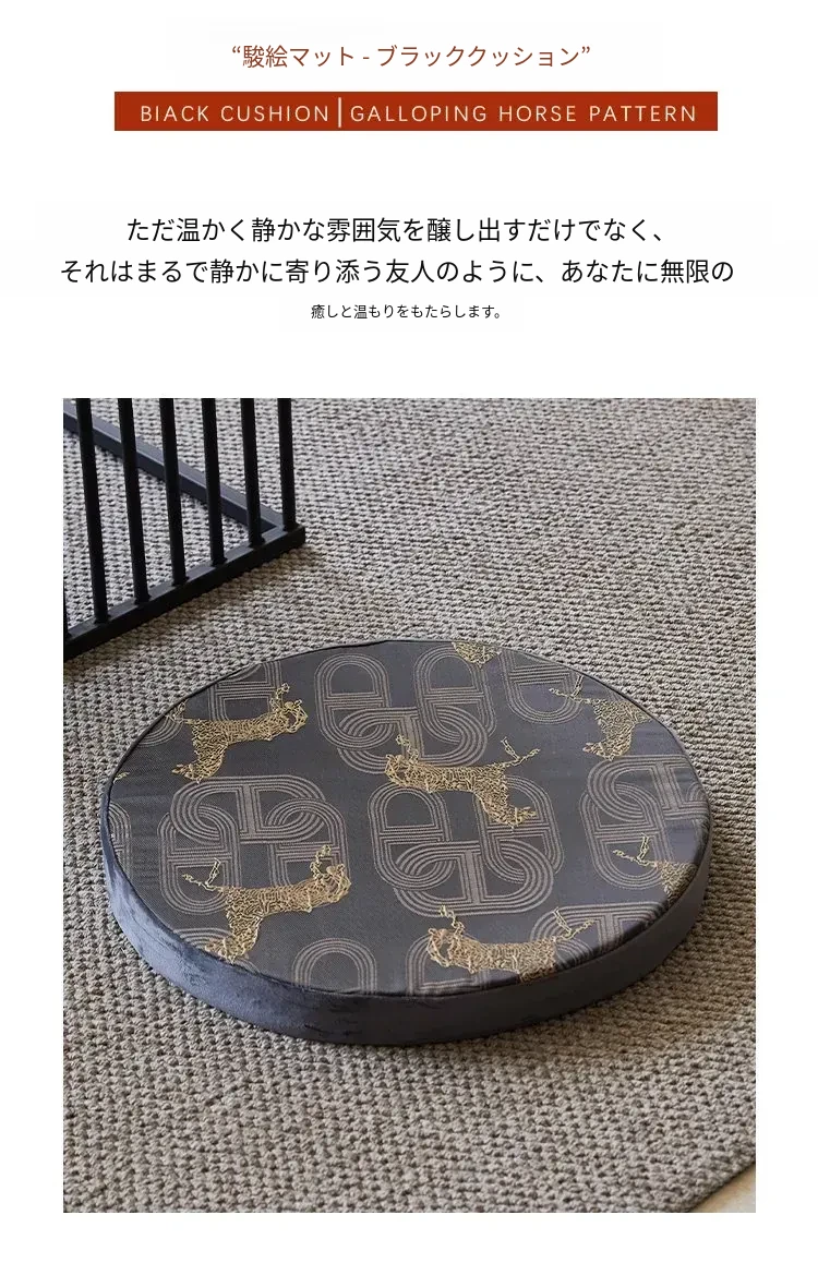 黒い馬のクッション - 円形