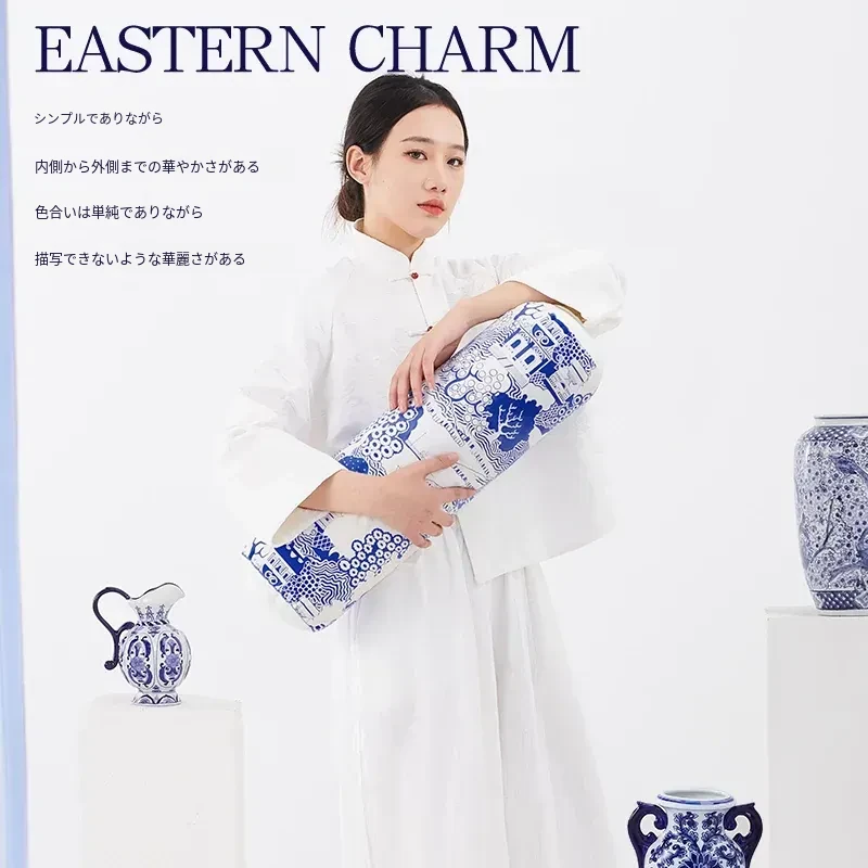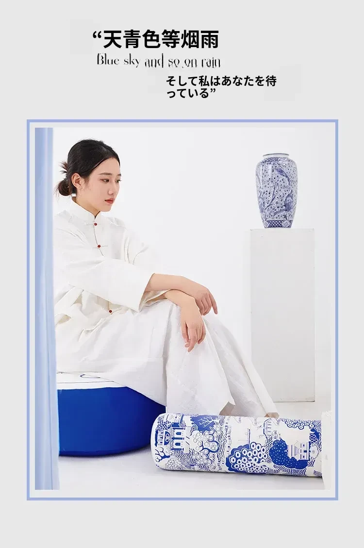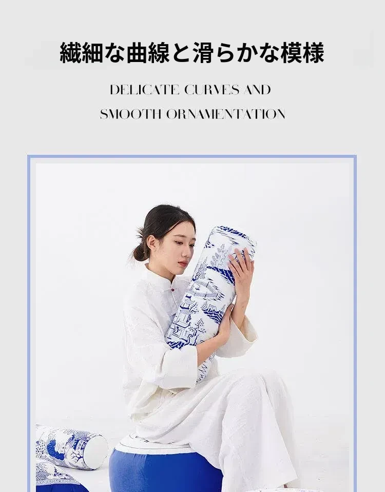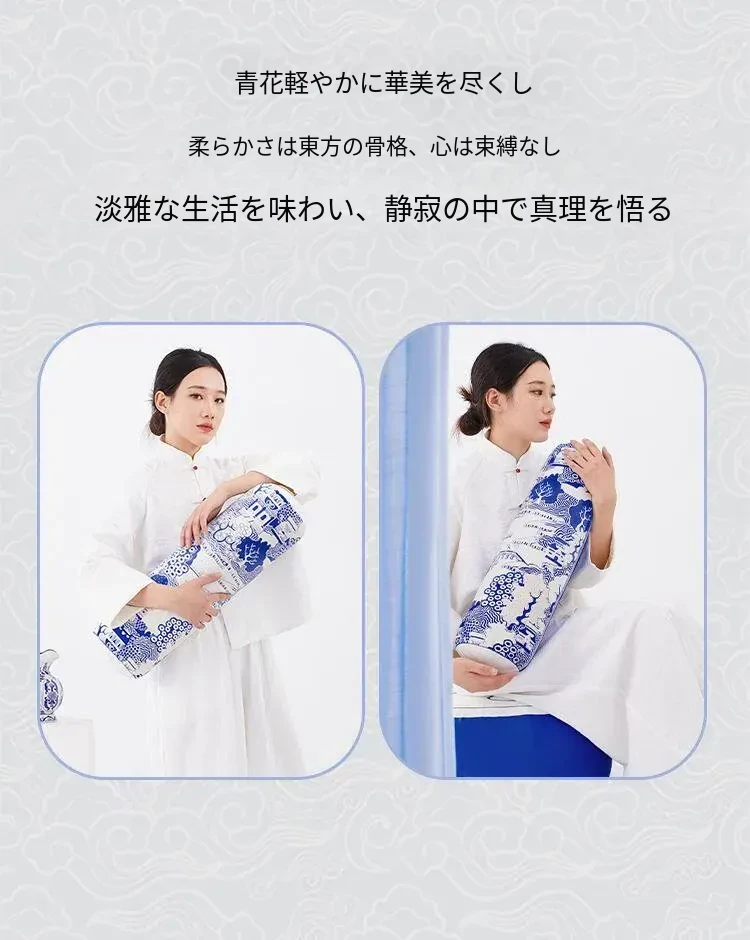 青花瓷デザインのホオズキ抱き枕|新中式の客間にぴったり!高級感あふれる中国風クッション、芯付きで快適な腰サポート|リラックスしたいあなたに最適なインテリアアイテム!