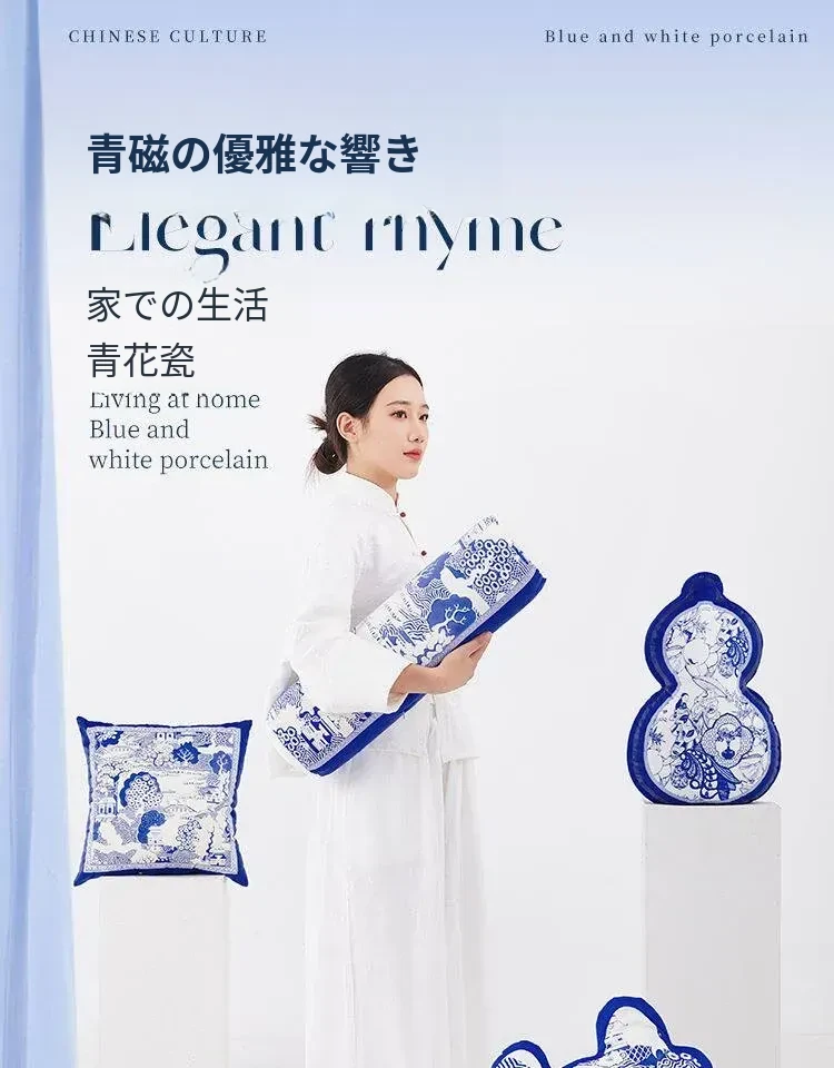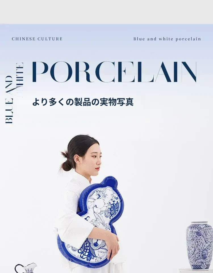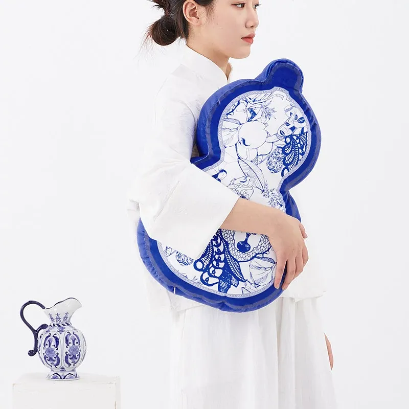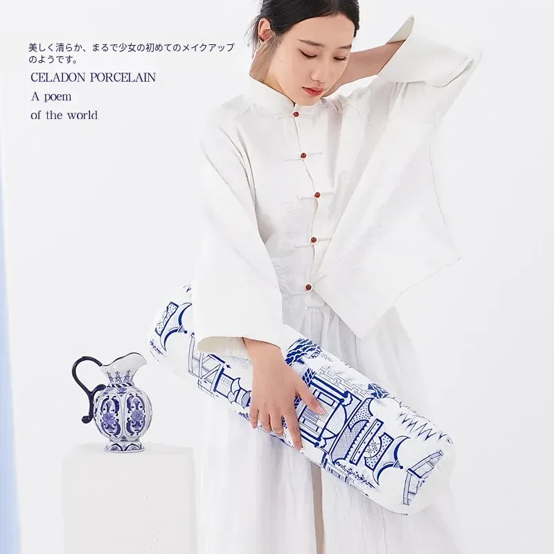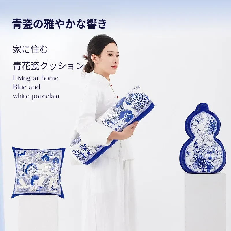 青花瓷デザインのホオズキ抱き枕|新中式の客間にぴったり!高級感あふれる中国風クッション、芯付きで快適な腰サポート|リラックスしたいあなたに最適なインテリアアイテム!