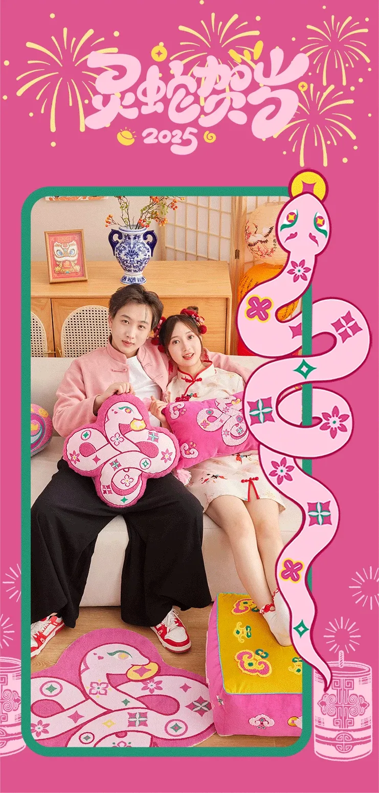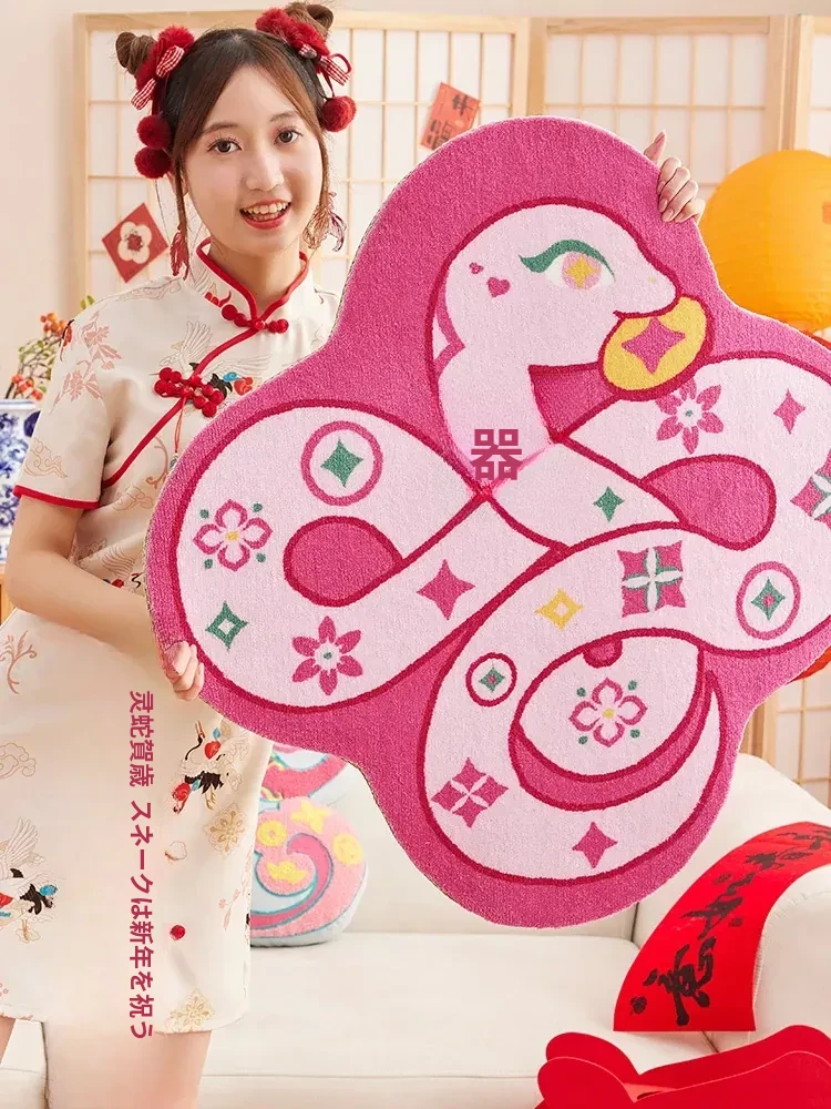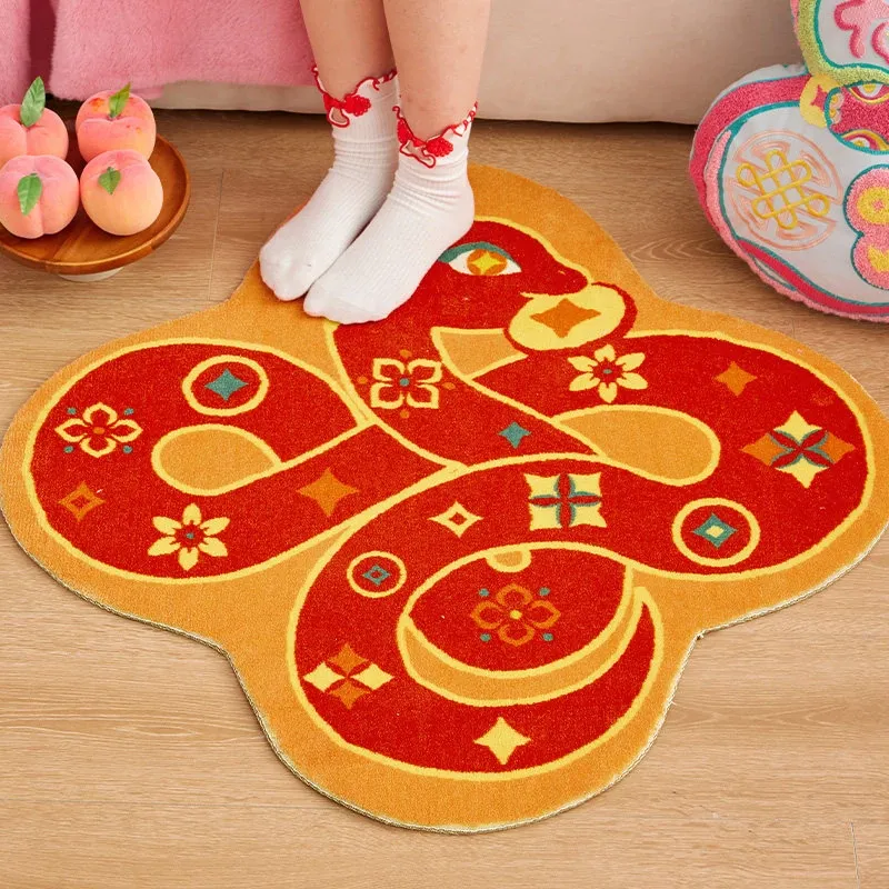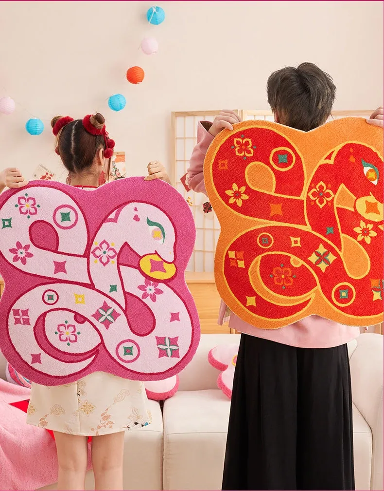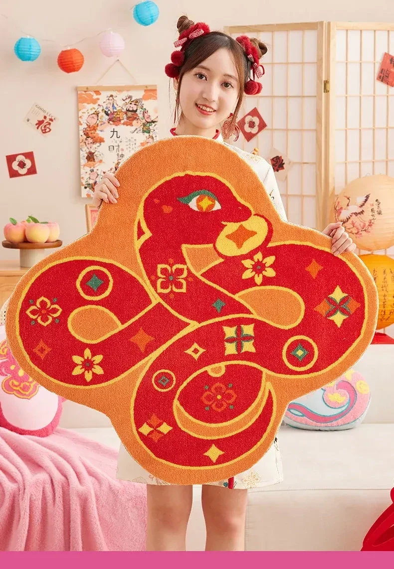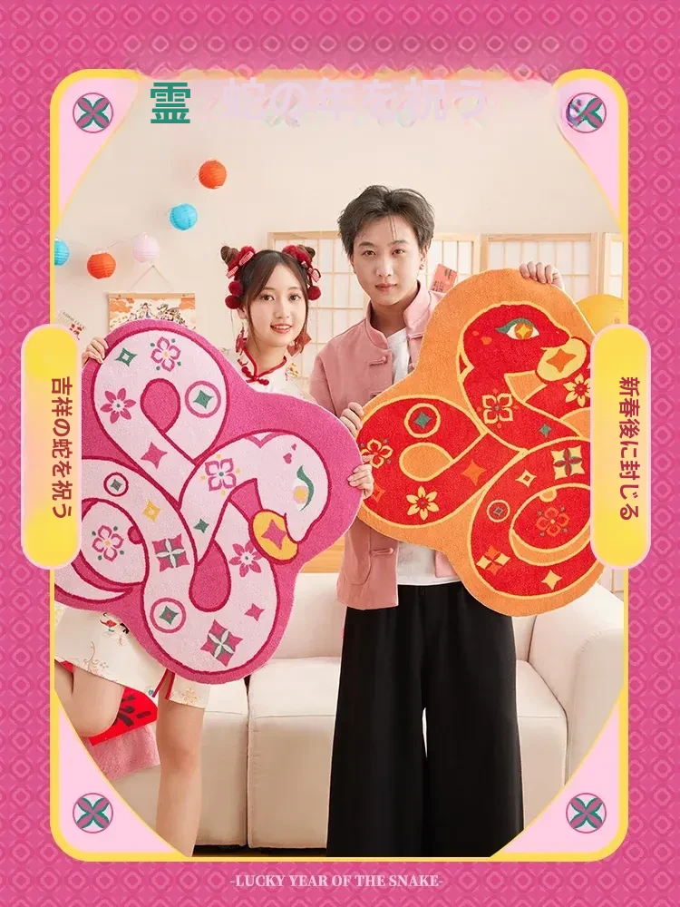 蛇と共に祝う!2026年の干支、マ年の新年にぴったりな華やかな赤い玄関マット。家の入り口を明るく彩る喜びの一品!