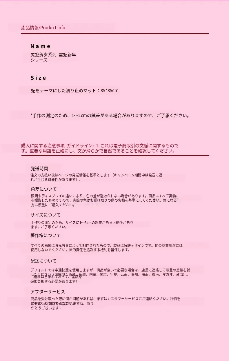 蛇来運転ピンク色ナイロンカーペット