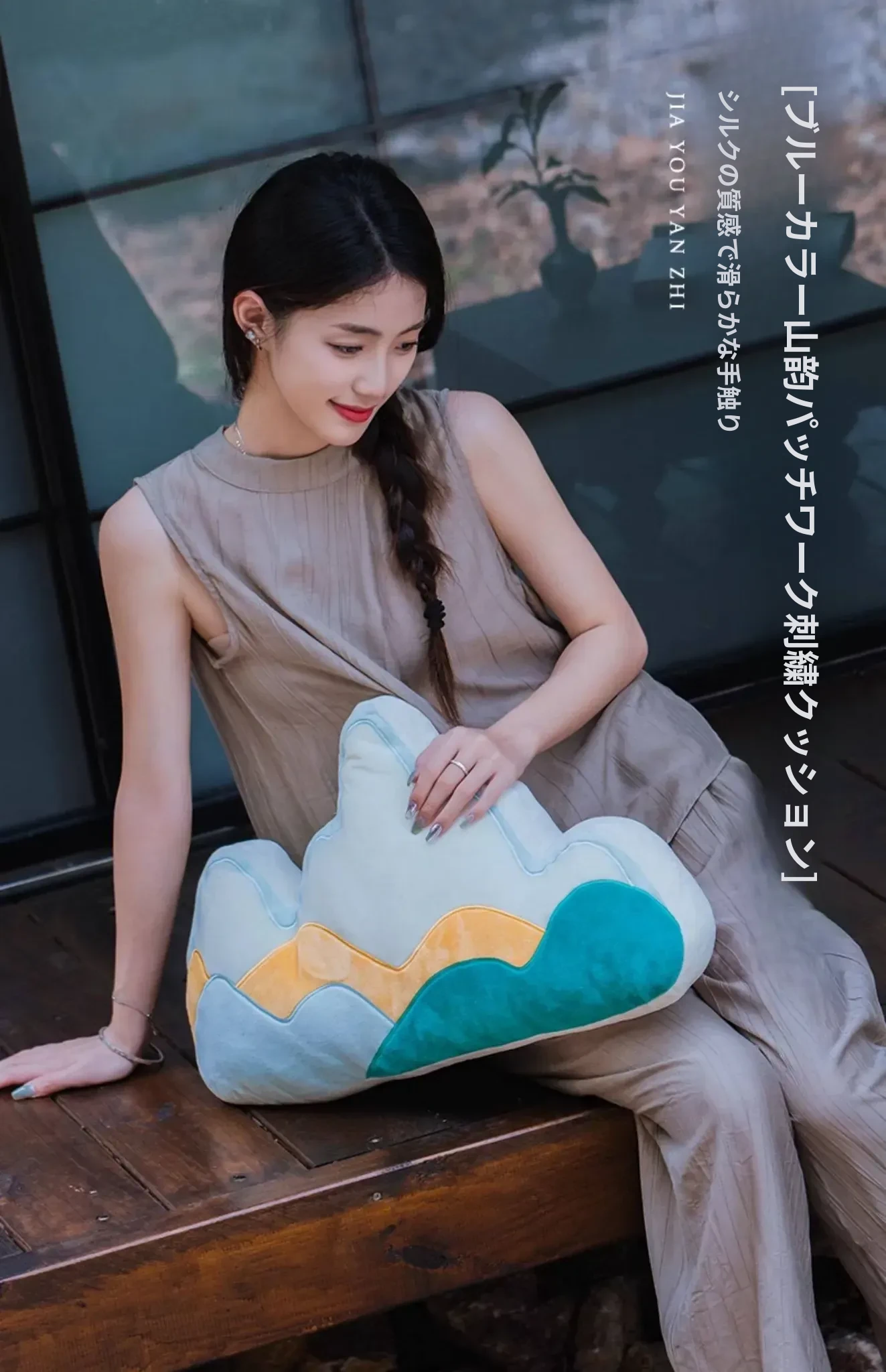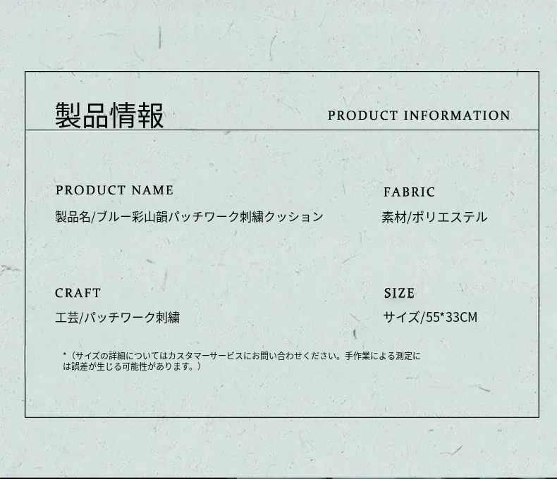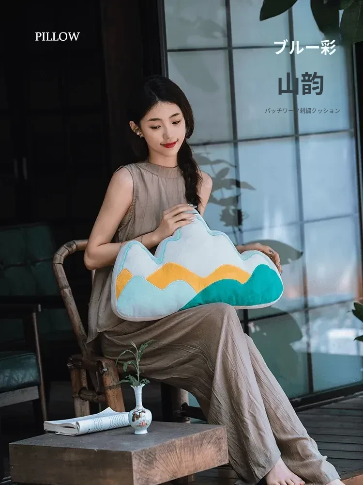 ブルーカラー山韻パッチワーク刺繍クッション+静かな青のリラックスパッチワーク刺繍クッション