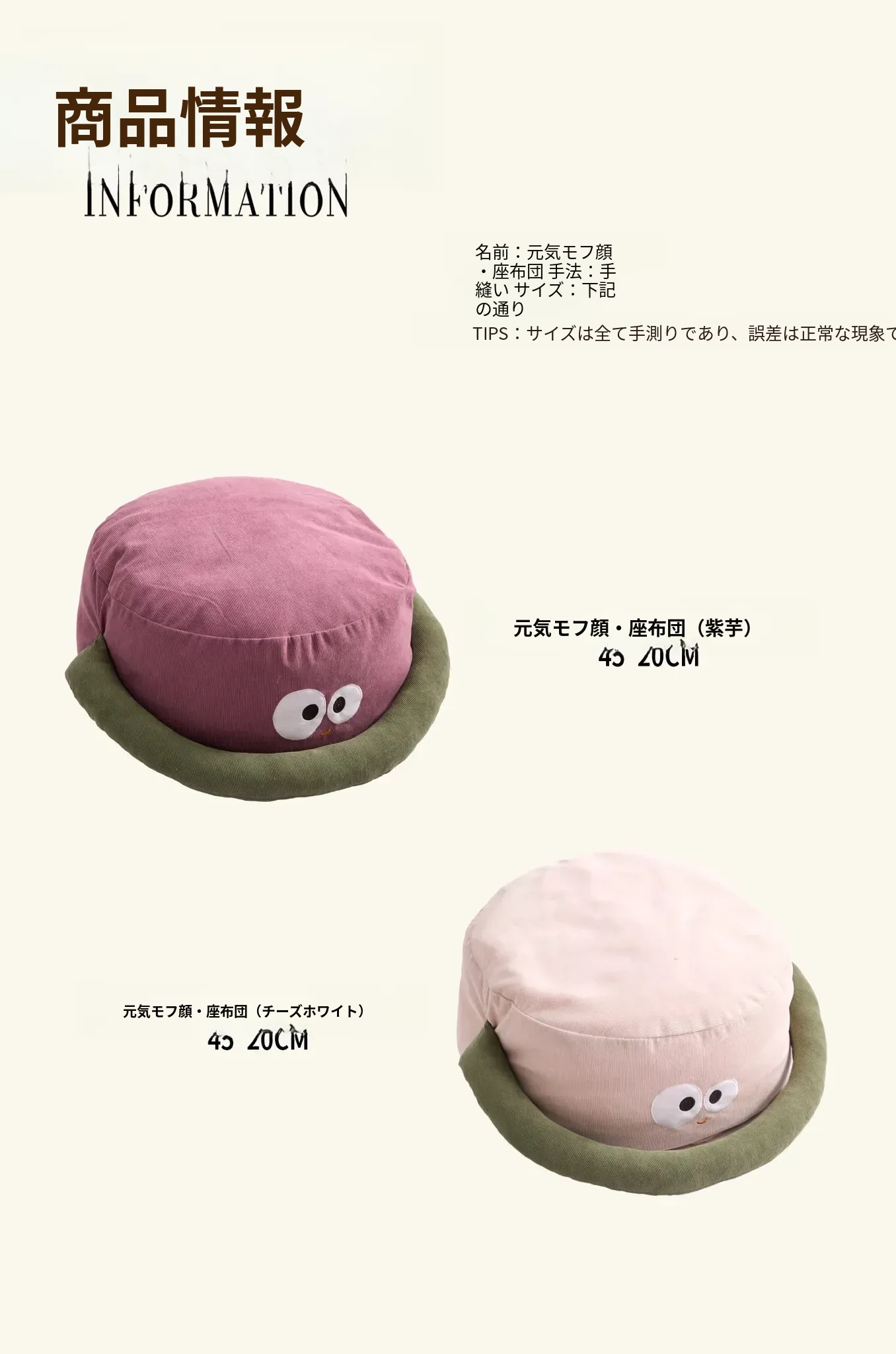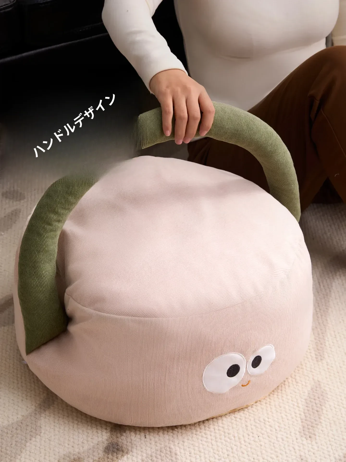 元気モエ顔手提げ座布団-チーズホワイト