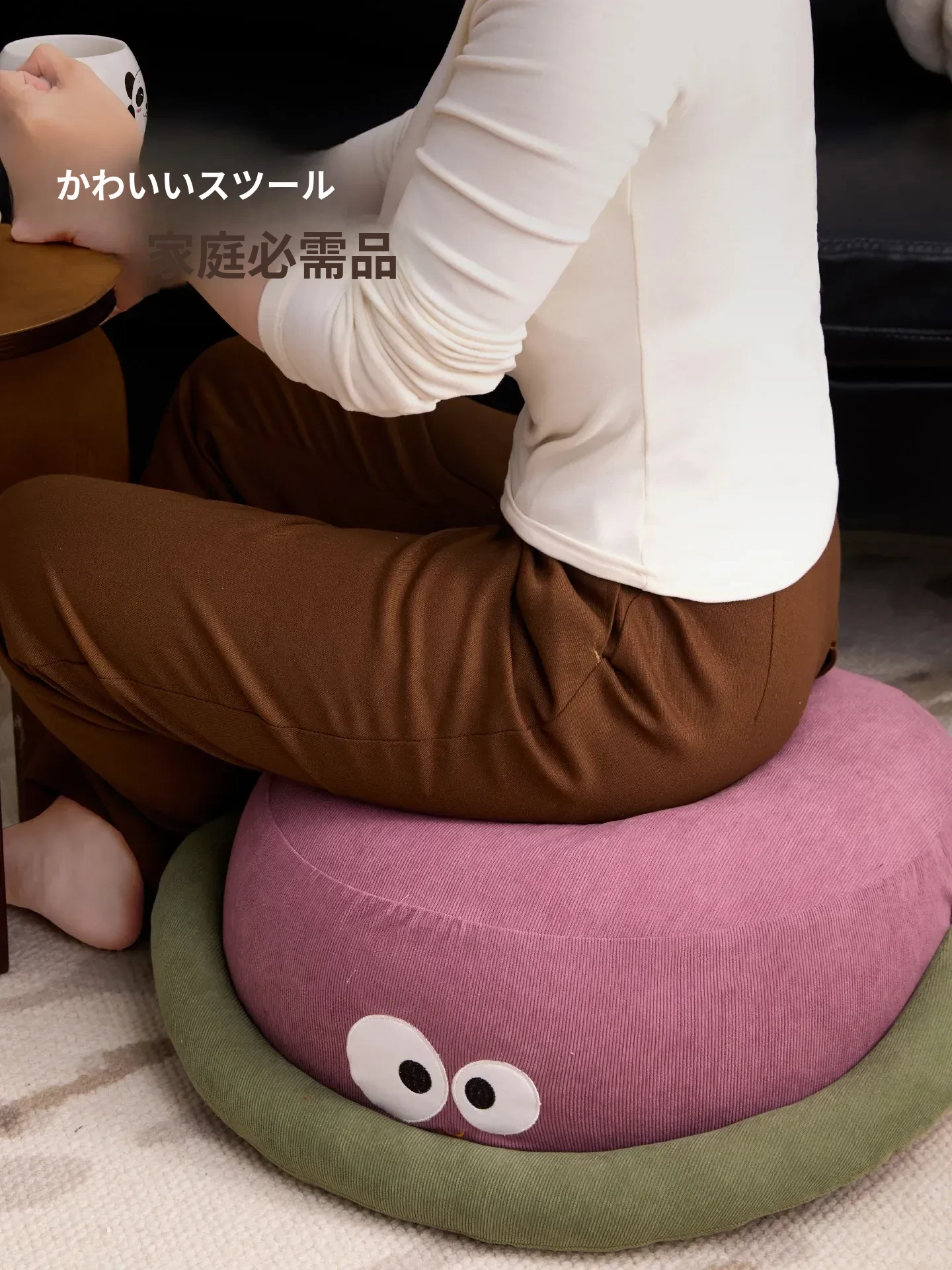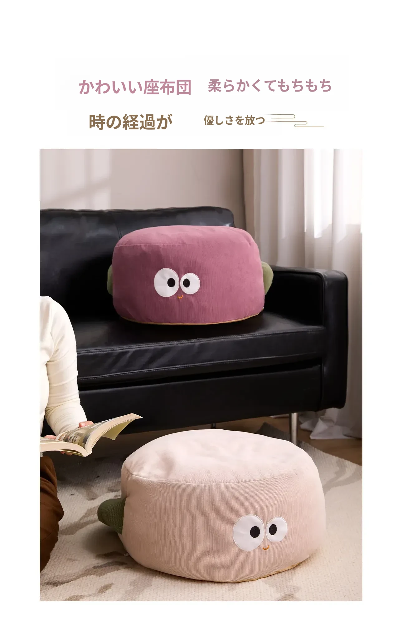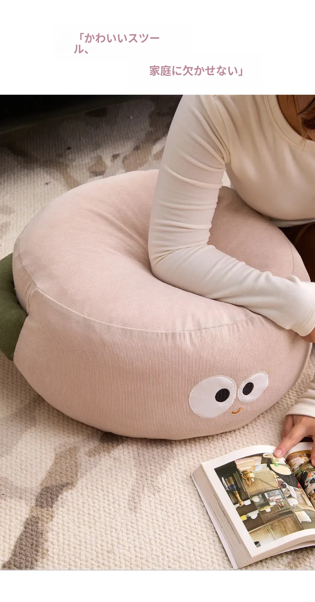 可愛いキャラクターの地上用座椅子!女性にぴったりのラフなデザインで、リビングや寝室に最適。快適なクッション性で、くつろぎのひとときをお届けします。畳やカーペットにも合うおしゃれなフロアクッションです!