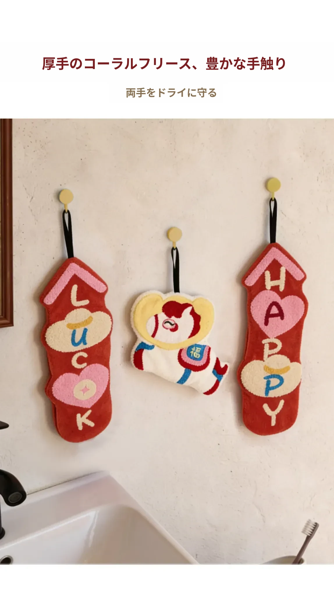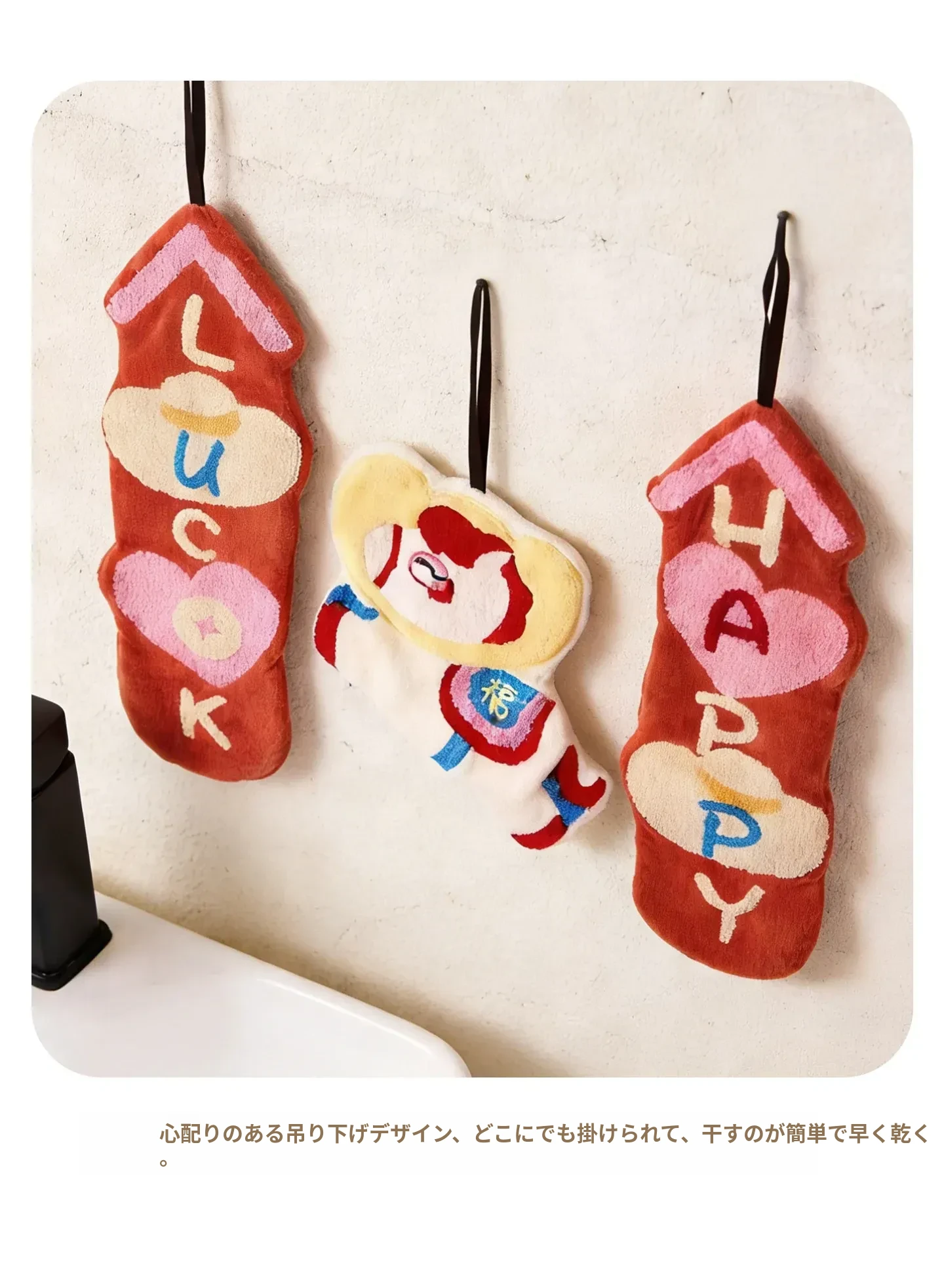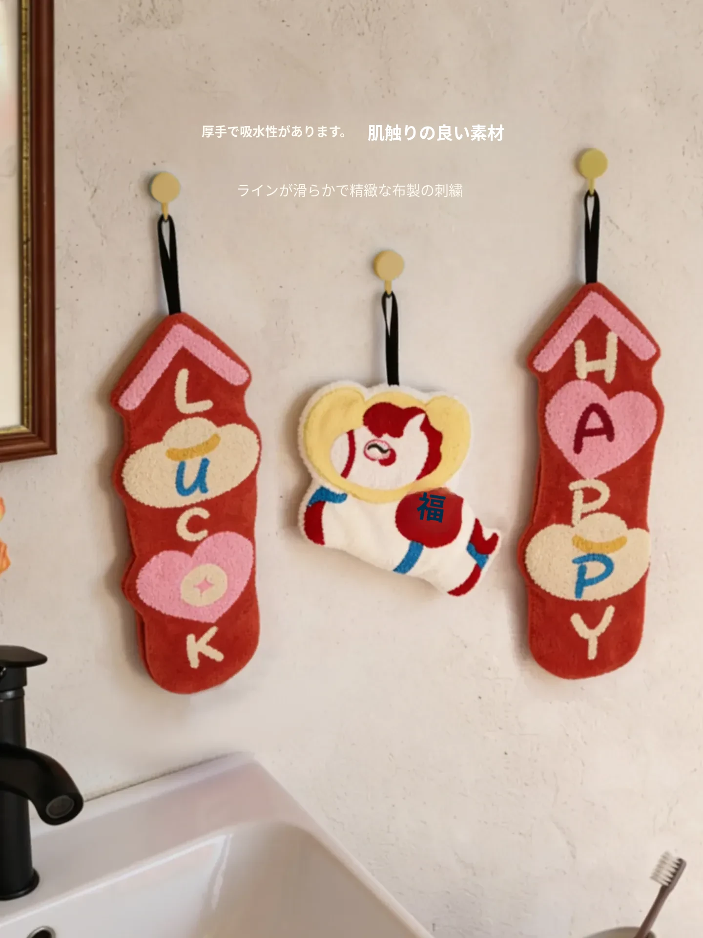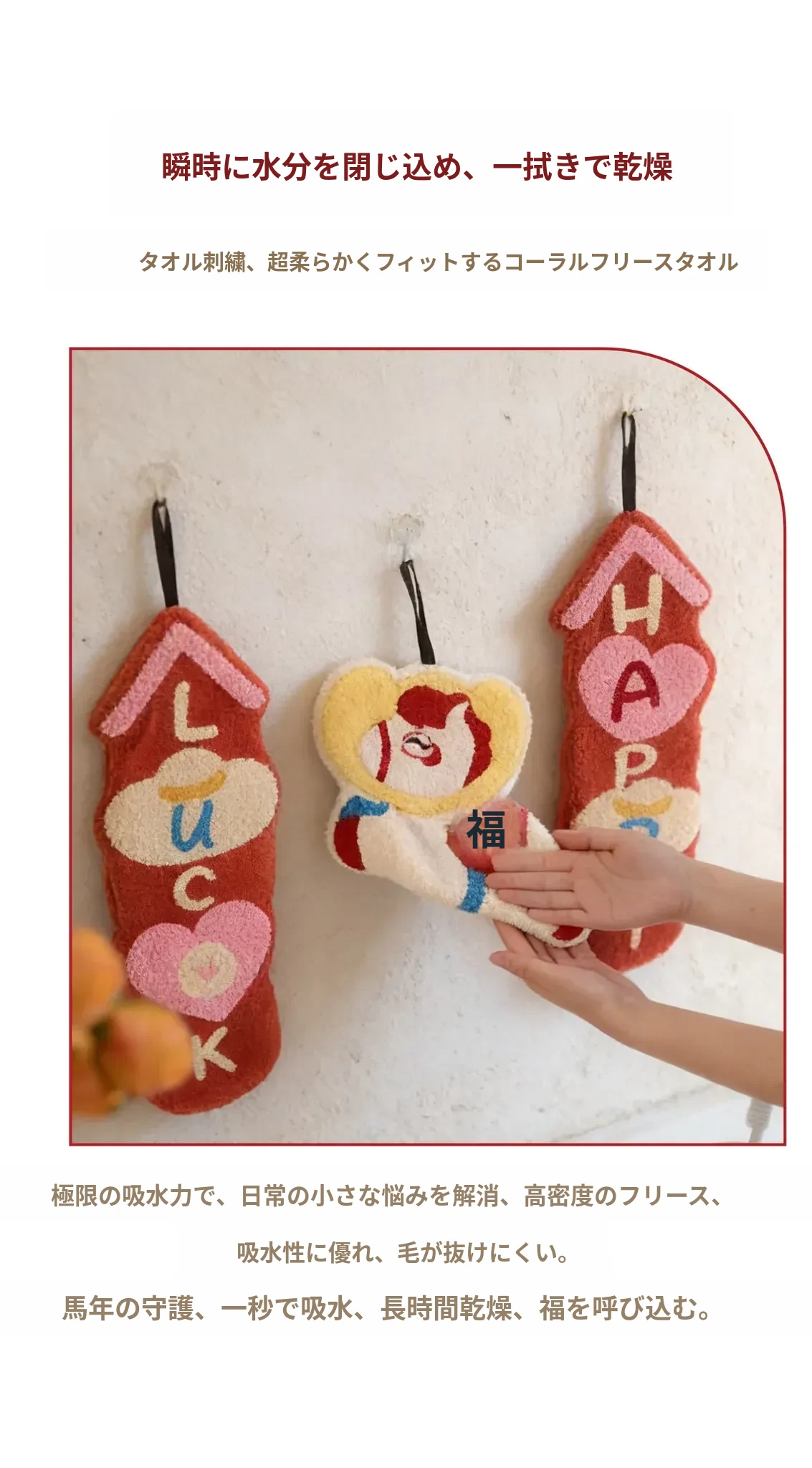 かわいいキャラクターのハンドタオル!超吸水&厚手で、トイレやキッチンに最適。馬年にぴったりの小さな馬のデザインタオルで、毎日の手洗いを楽しく!