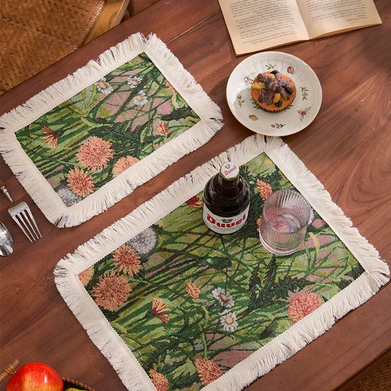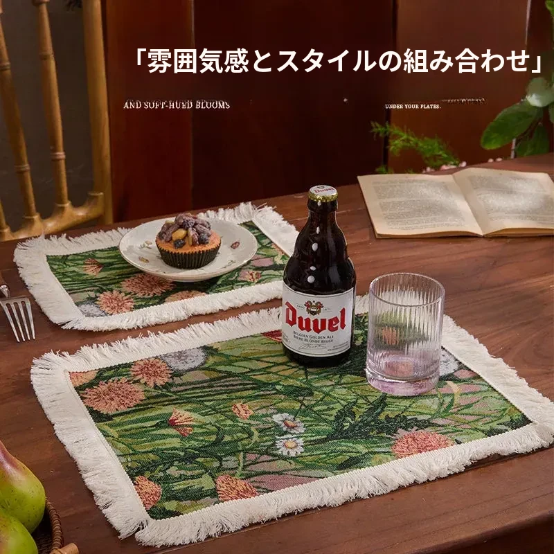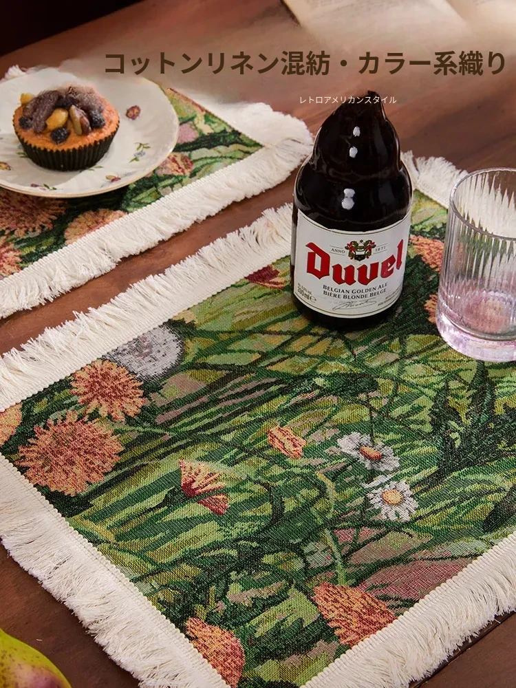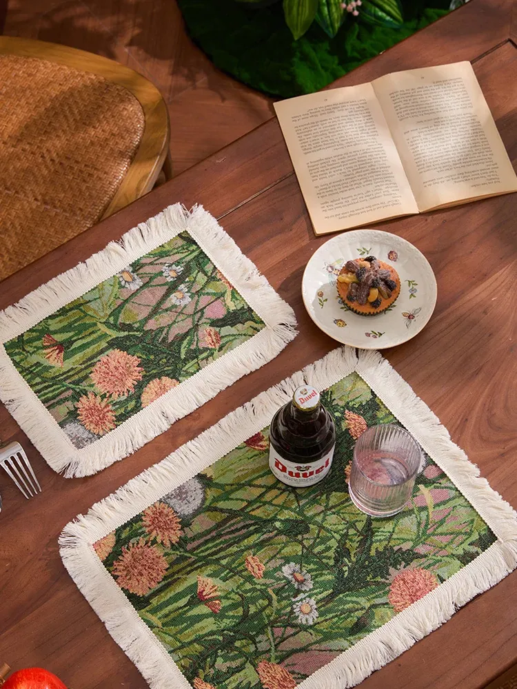 アメリカンカントリー風レトロファブリックランチョンマット - 高級感漂うライトラグジュアリー、一人用家庭食にぴったり!温度を気にせず使える、心地よい雰囲気を演出します。