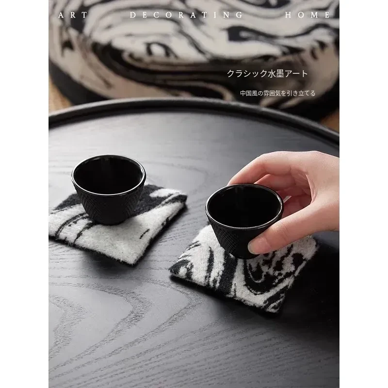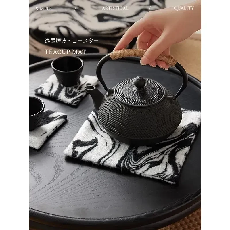 新中式デザインの吸水性&洗浄不要のコースター、デスク用熱遮断マット。おしゃれな四角形で、汚れに強く、茶道や功夫茶のアクセサリーとして完璧な雰囲気を演出します。