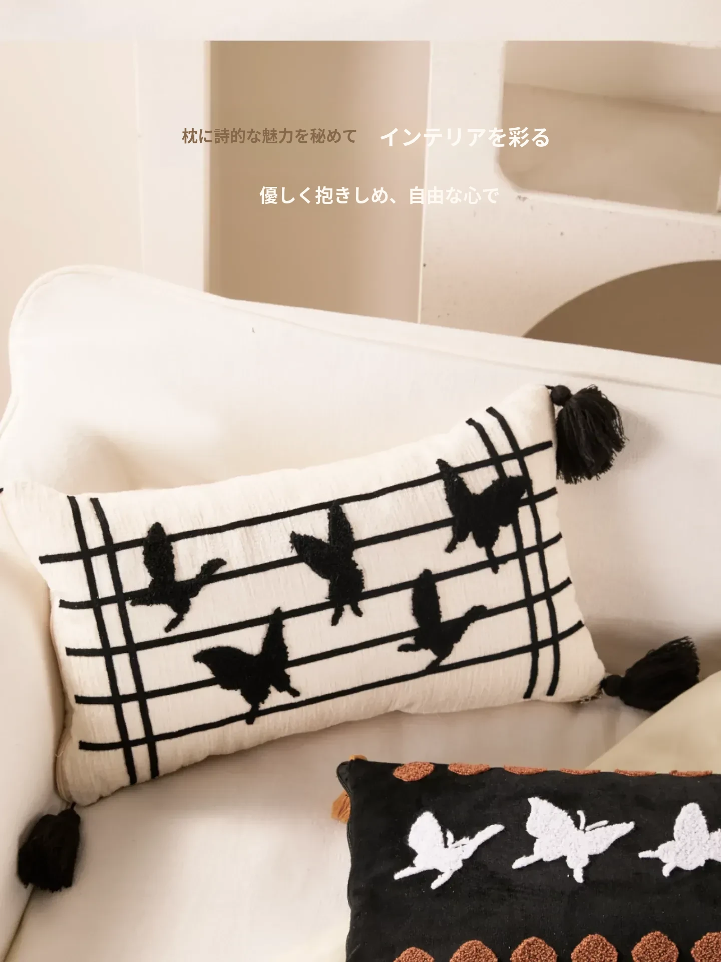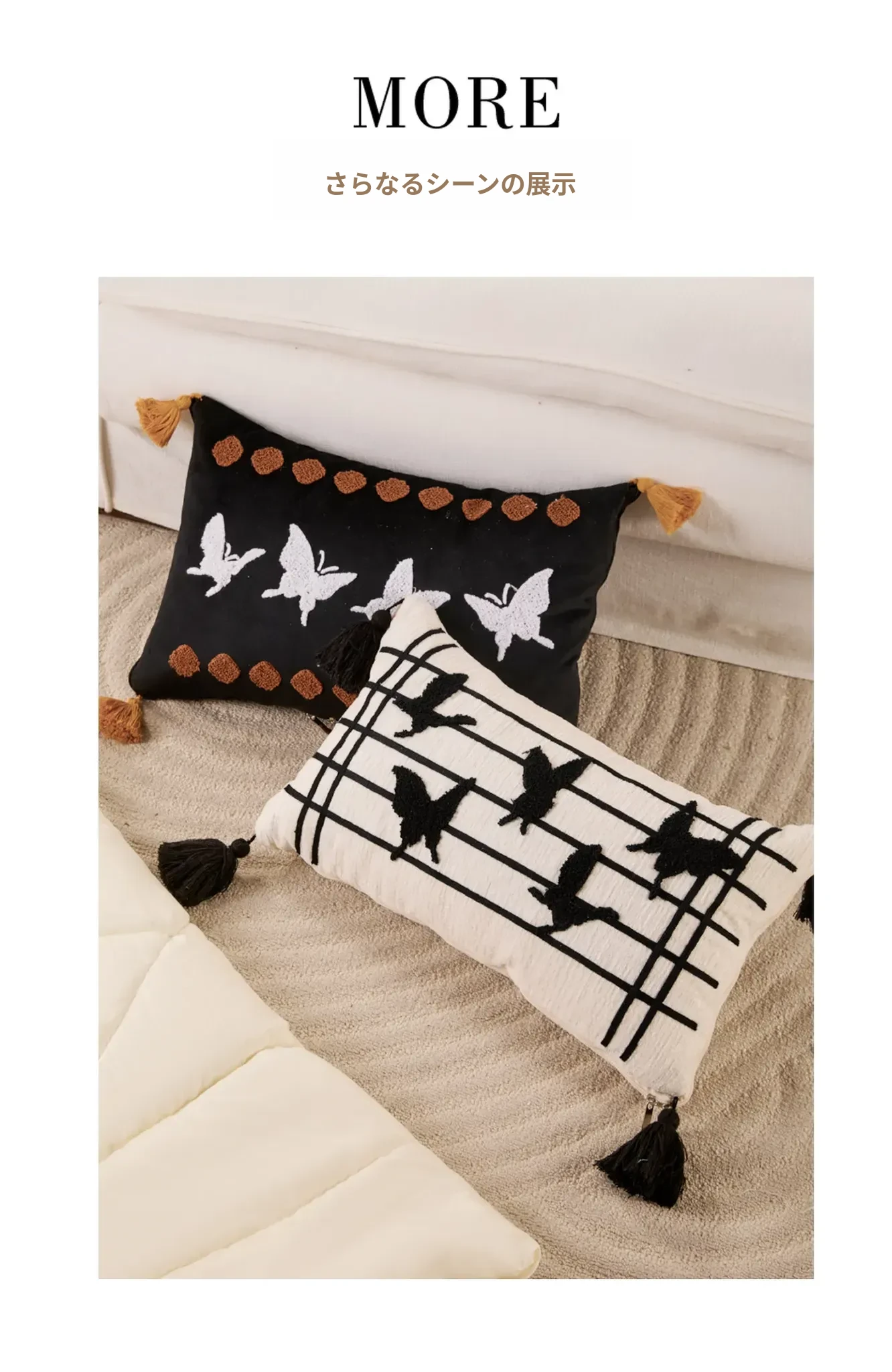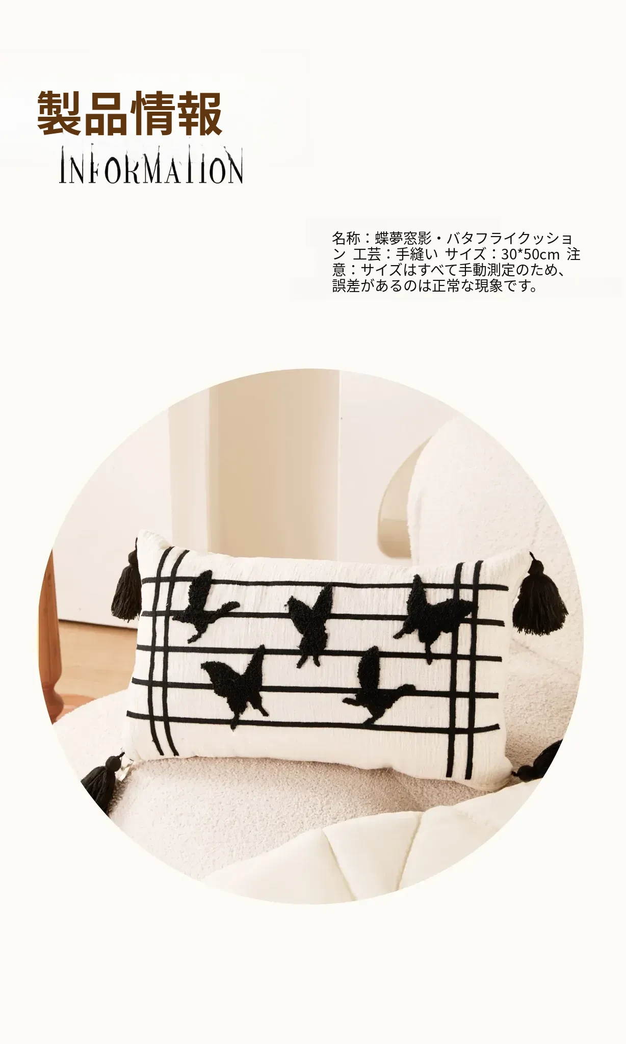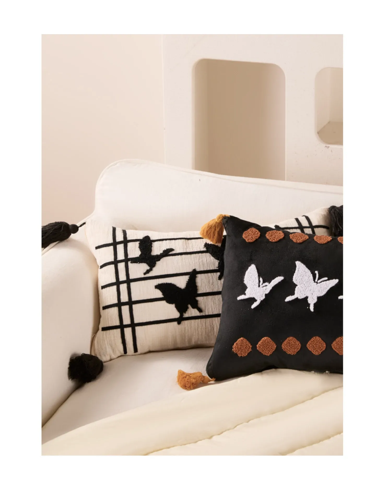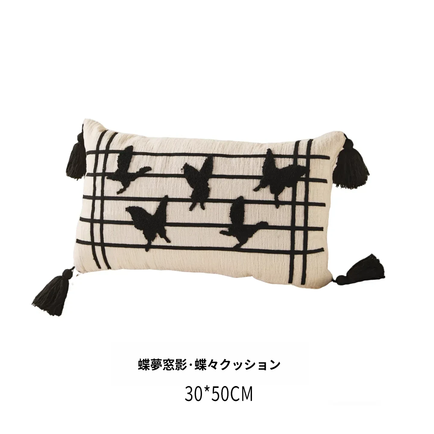 蝶刺繍窓影バタフライクッション 30*50cmクッション中身+カバー