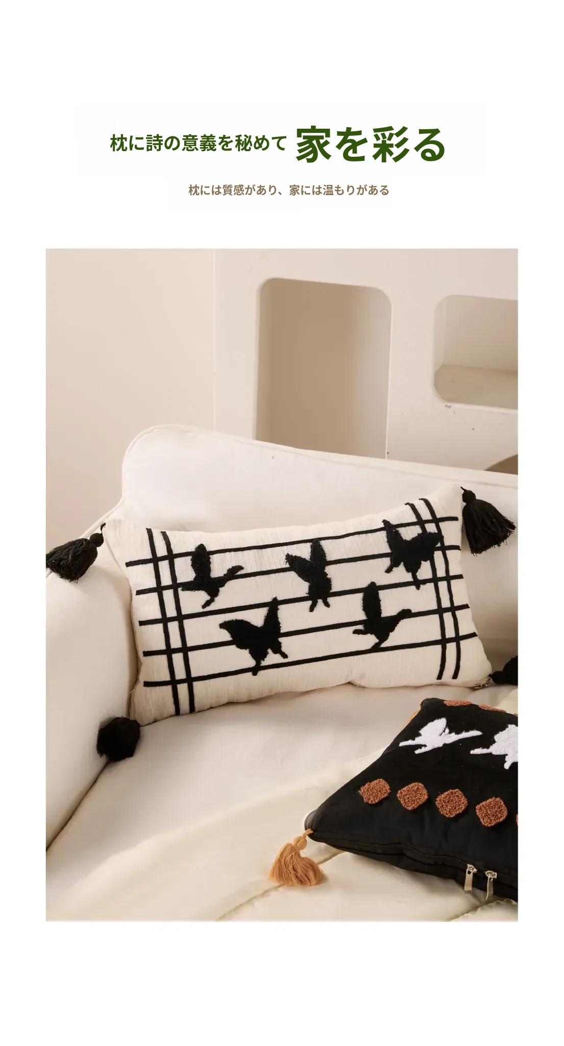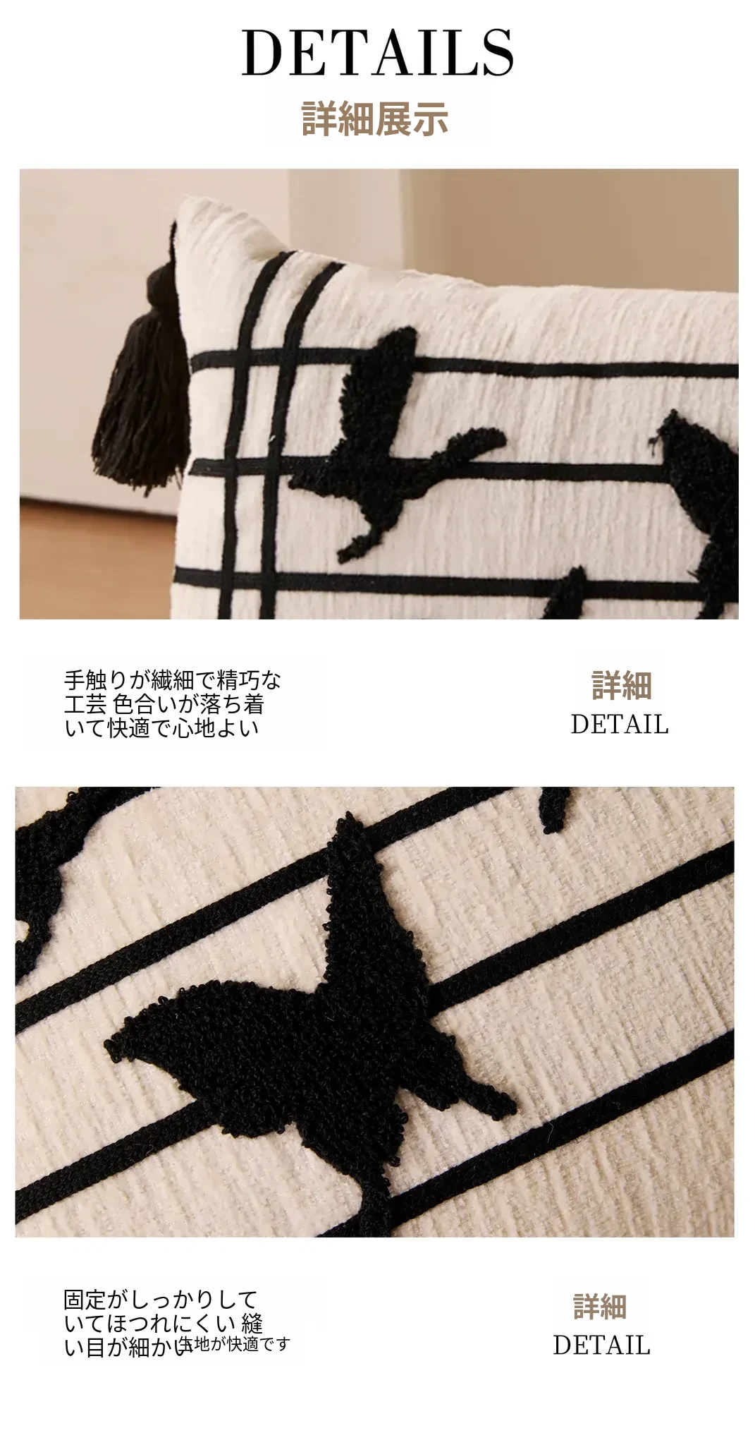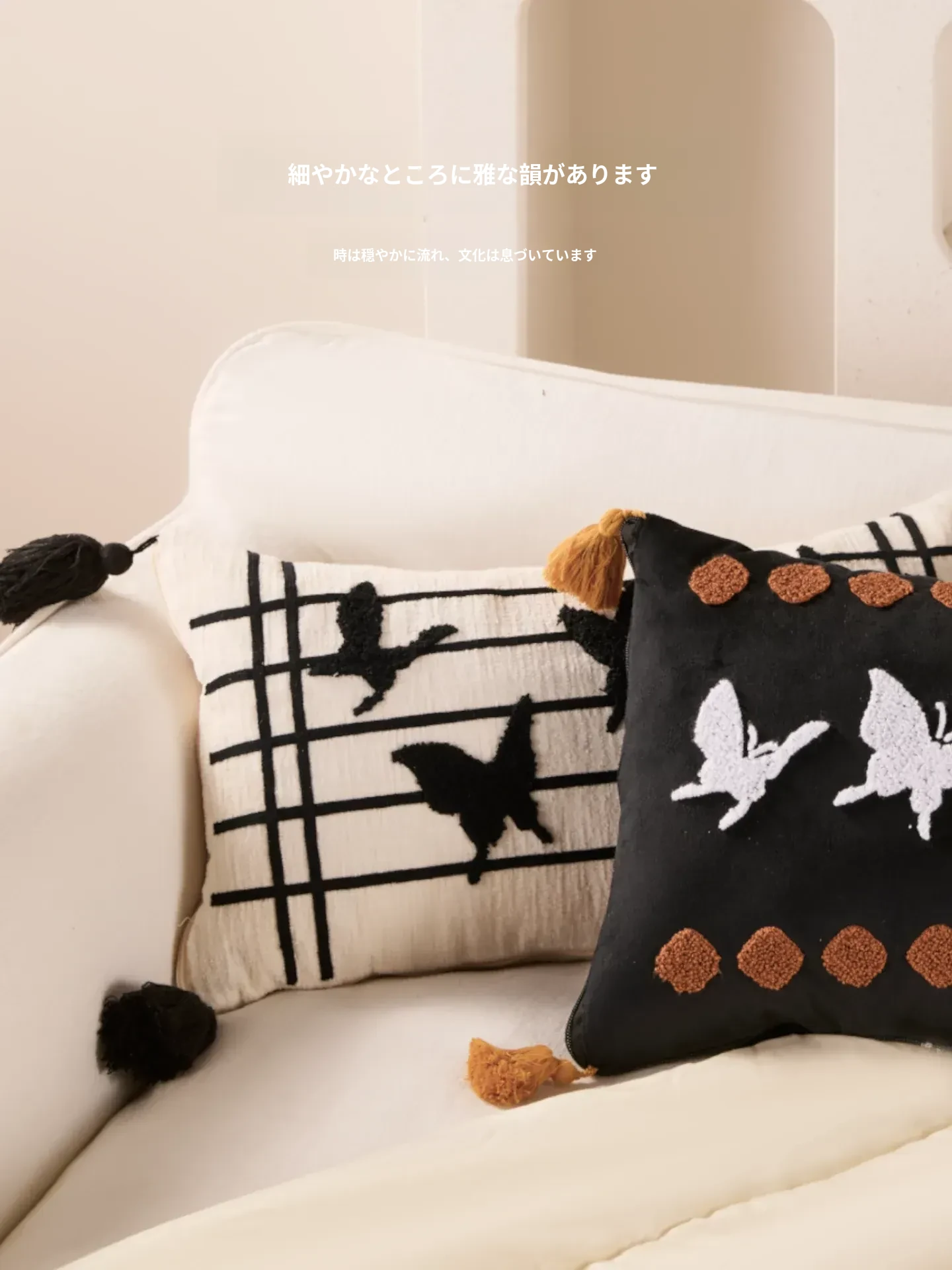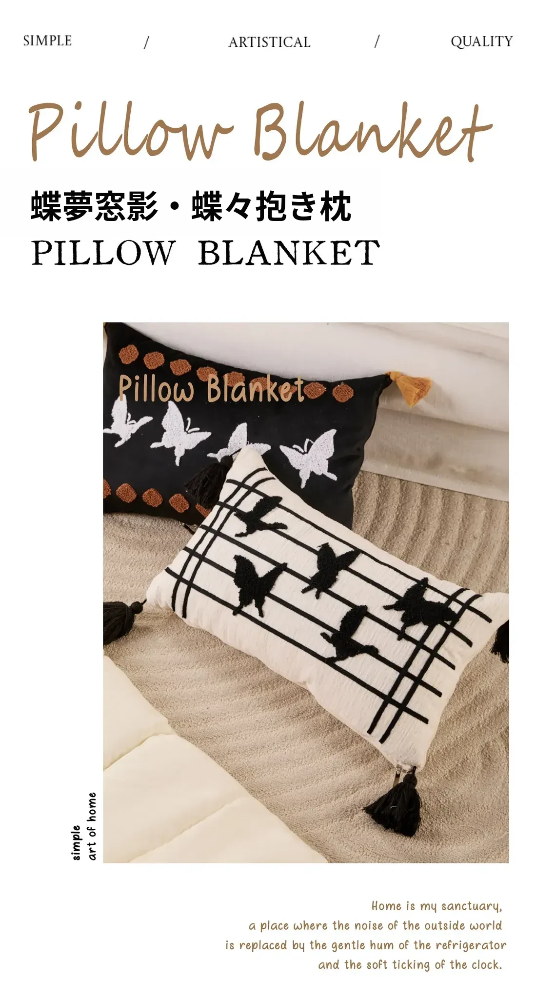 新中式デザインの流れるようなフリンジ付きバタフライクッション - 高級感溢れる黒色で、リビングやソファにぴったり!腰をサポートし、ベッドでの脚の間に置いても快適。優雅さと機能性を兼ね備えたアイテムです。