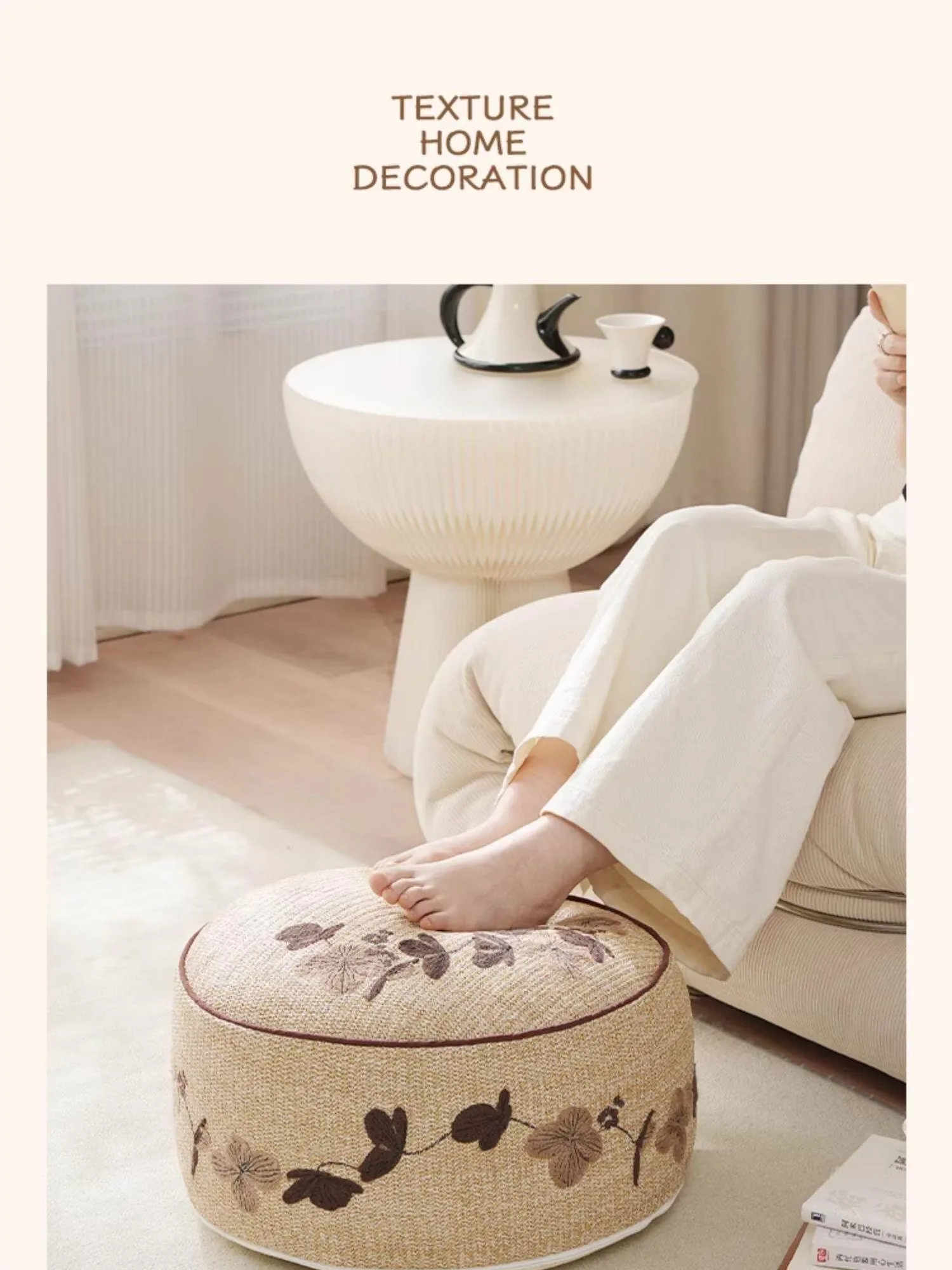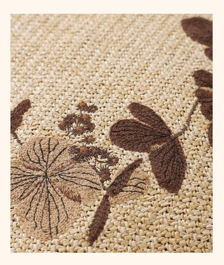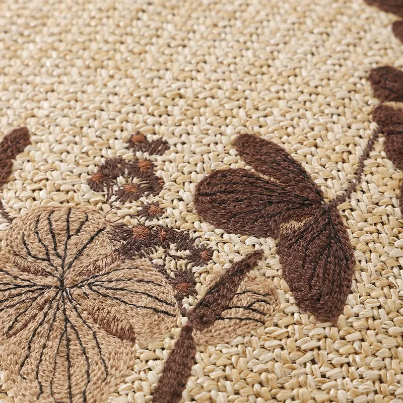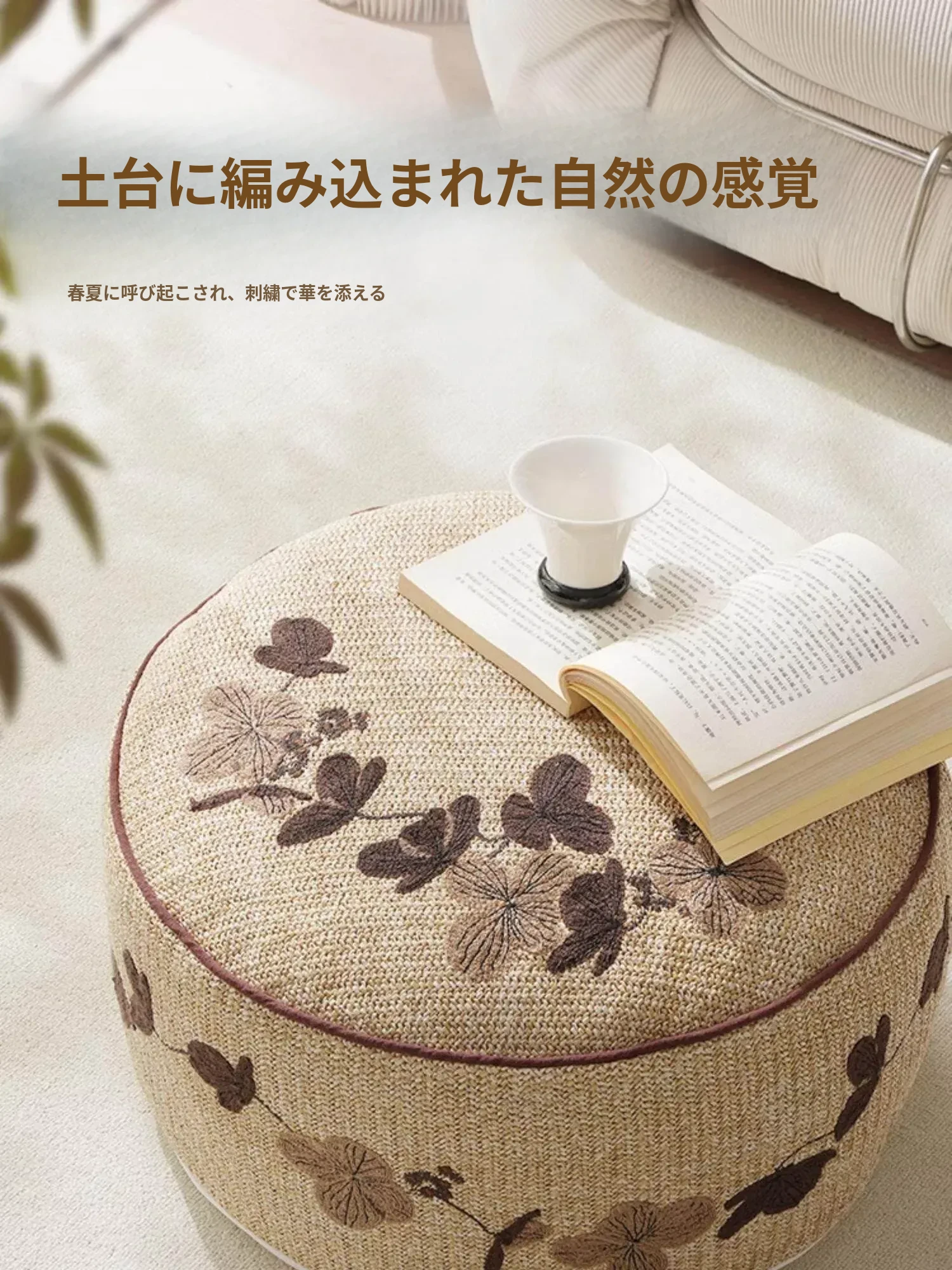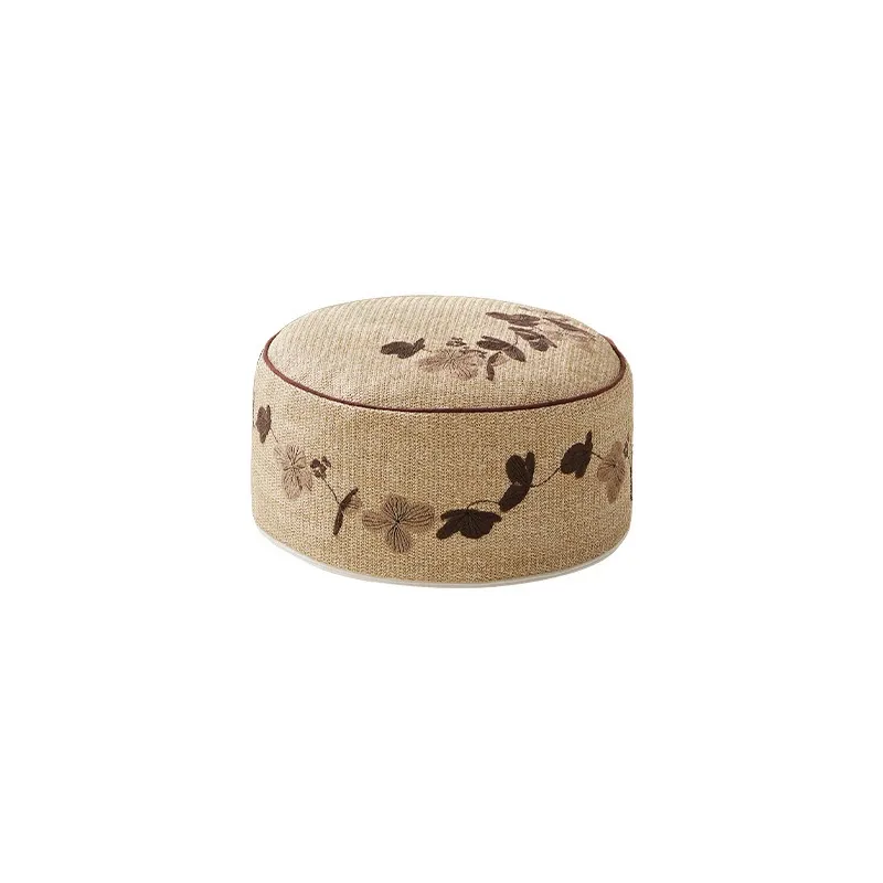 ウッドPP草刺繍入りロープスツール - 円形