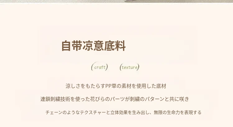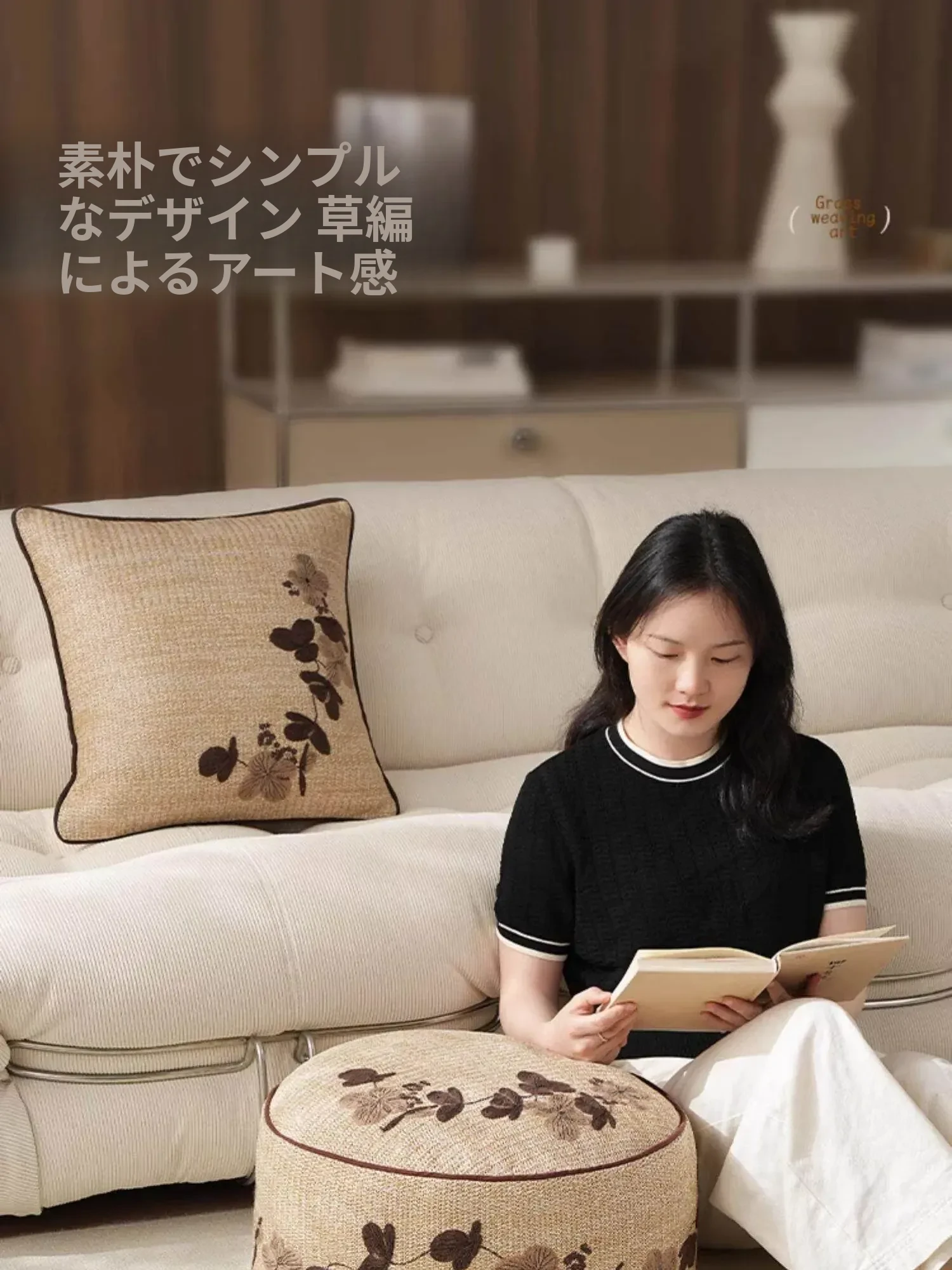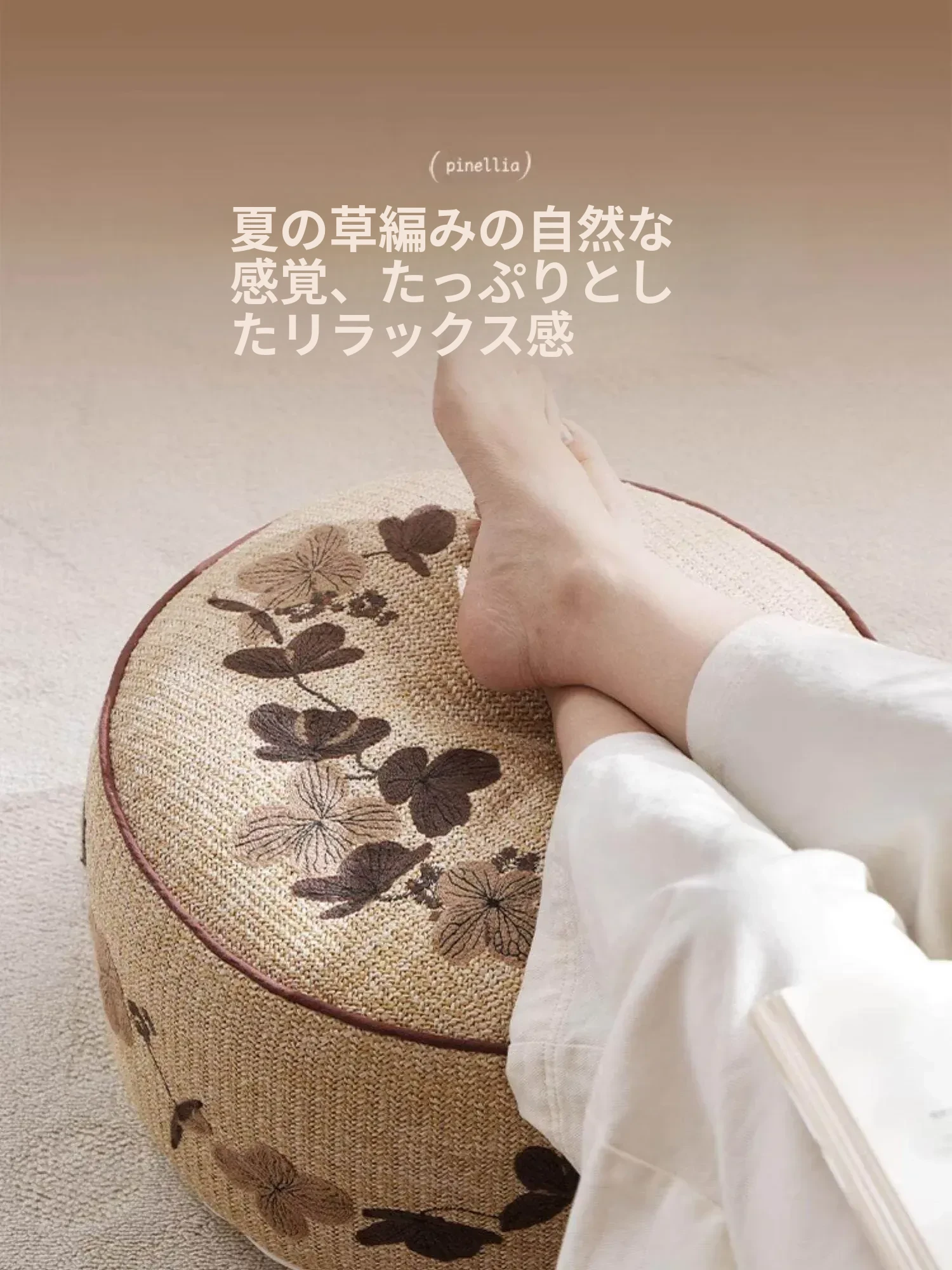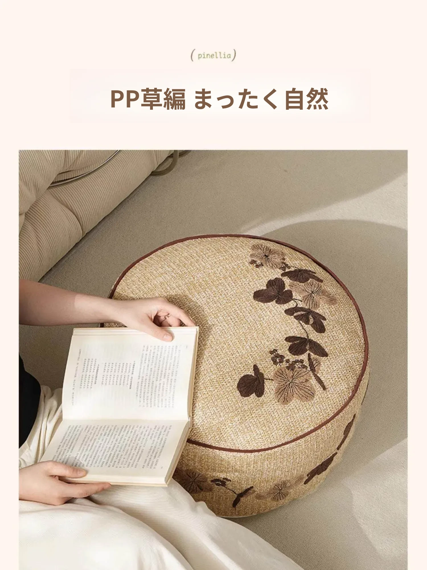 ウッドPP草刺繍入りロープスツール - 円形