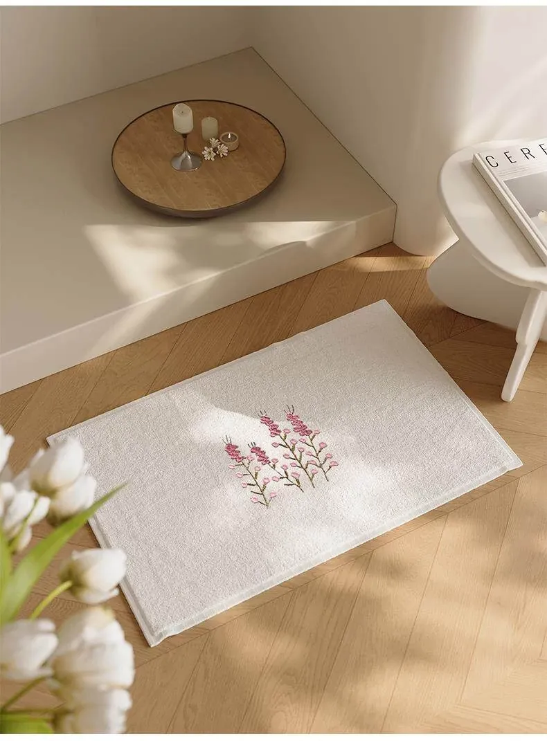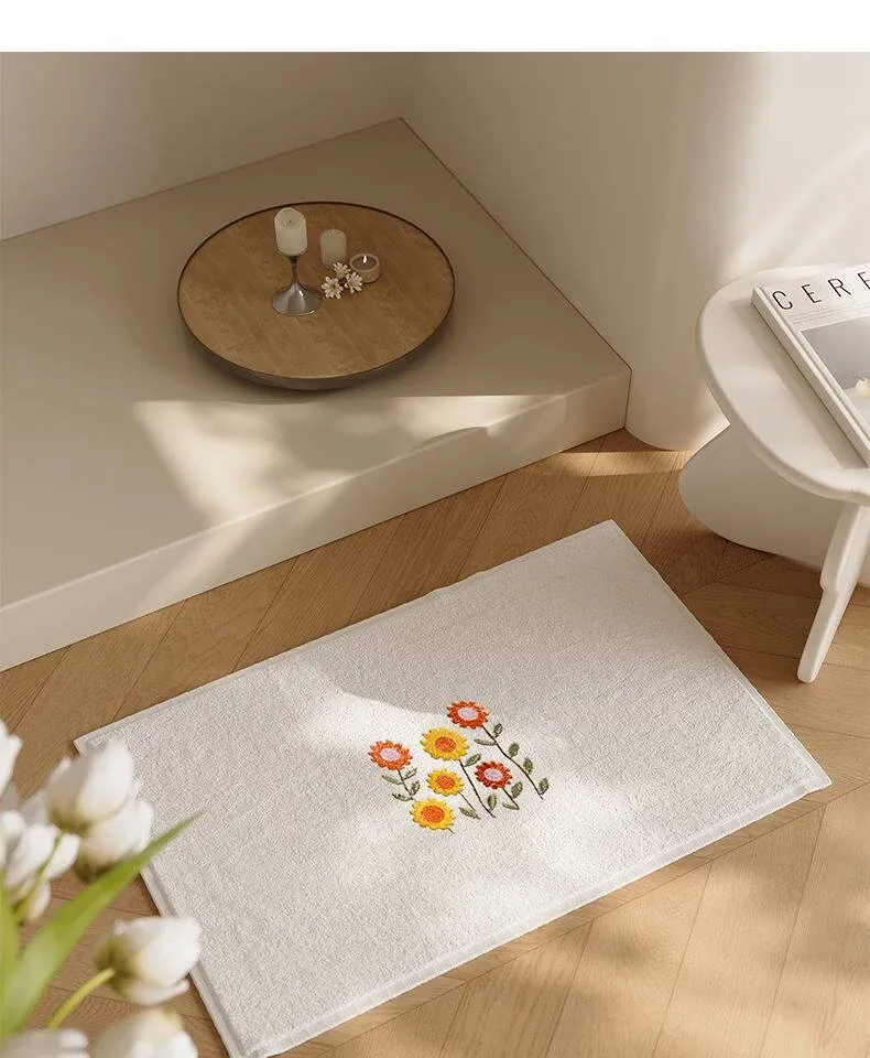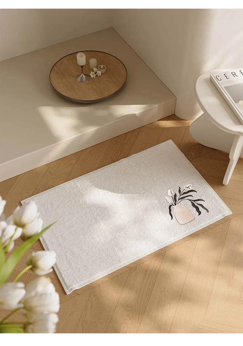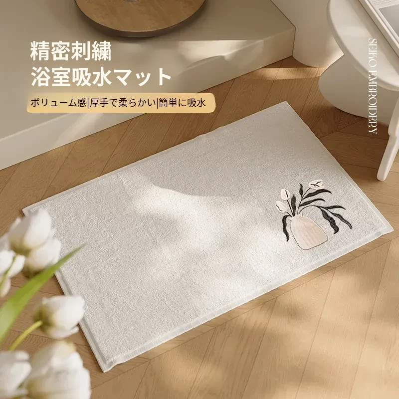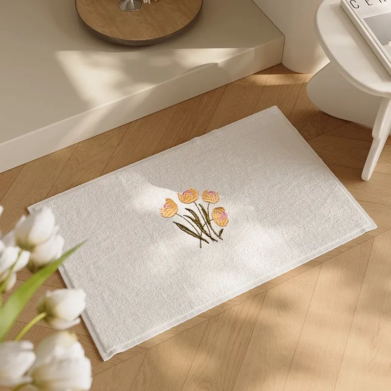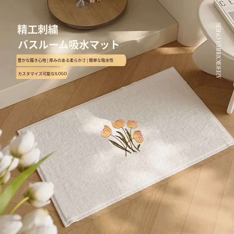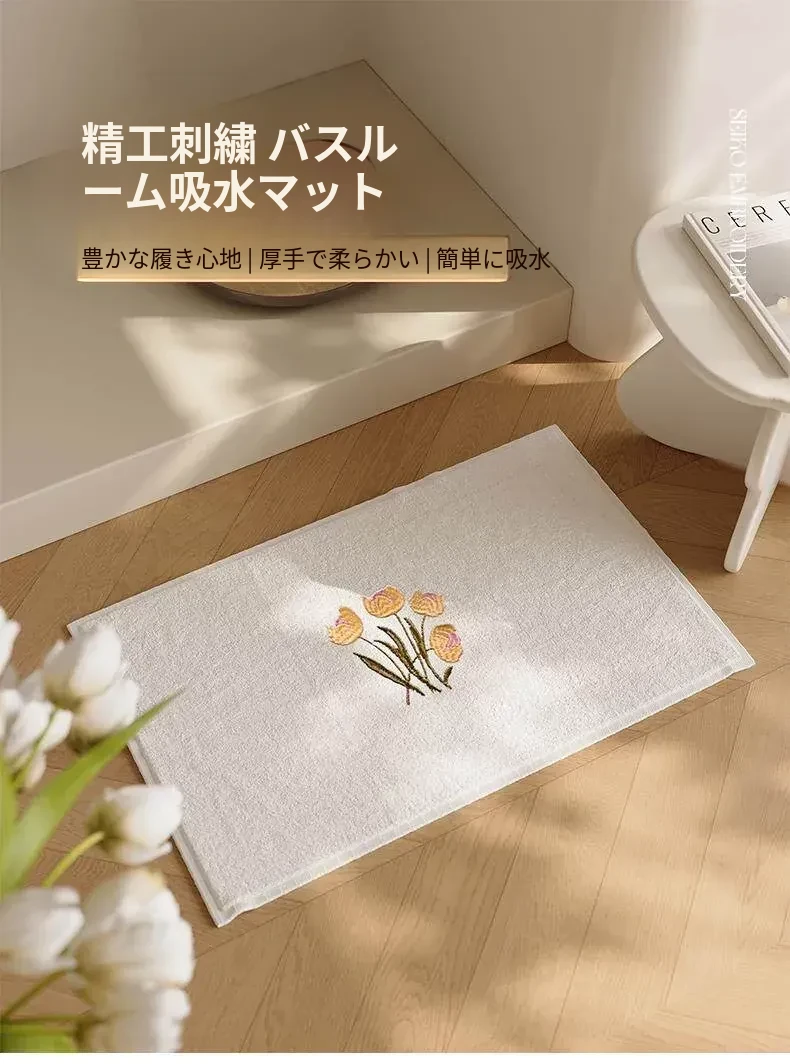 五つ星ホテル品質!チューリップ刺繍入り吸水マット - バスルーム用速乾・汚れに強いデザインラグ!快適なシャワータイムを演出します。