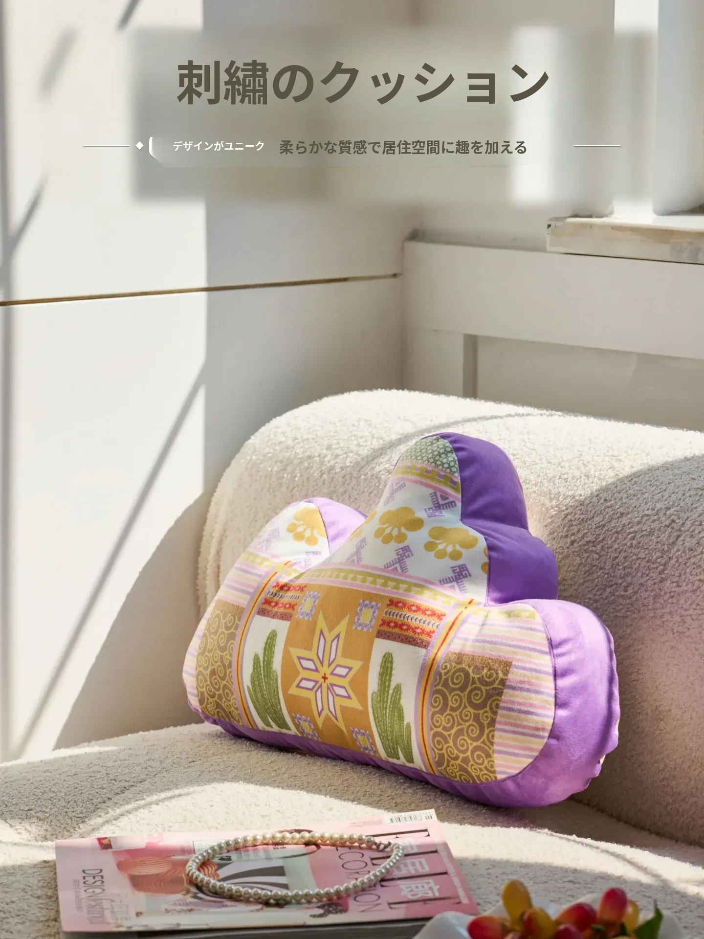 紫韵サボテン刺繍クッション【46*30*10cm中綿付き】