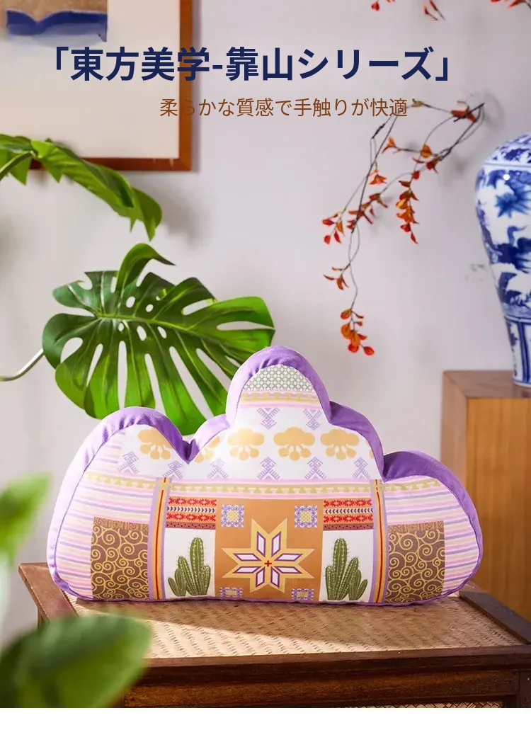 新中式スタイルのリビングソファ用背もたれクッション - オフィスや作業スペースに最適なユニークな腰当て枕!山形デザインで、快適さとエレガンスを兼ね備えた抱き枕。心地よいサポートで、リラックスした空間を演出します!