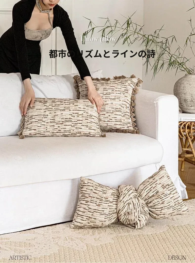 モダンミニマリストスタイルの高級感あふれるソファクッション - リビングルームや寝室にぴったりのスタイリッシュな腰枕、窓際クッション、ベッドサイドクッションとして最適!あなたの空間を一層引き立てるアイテムです。
