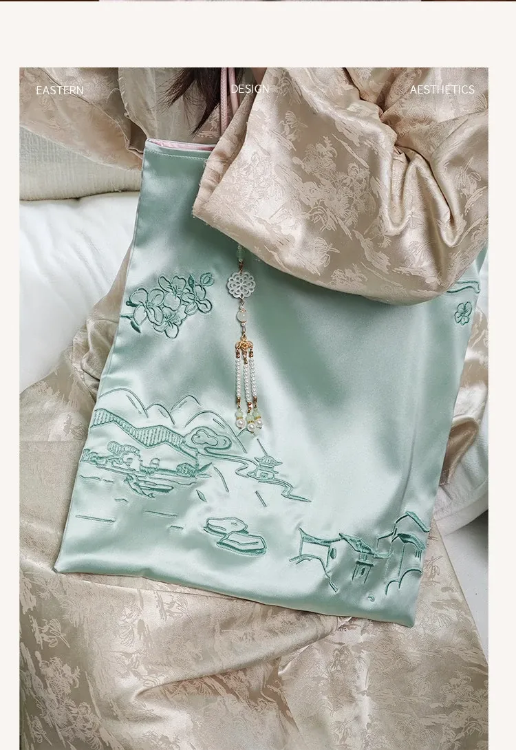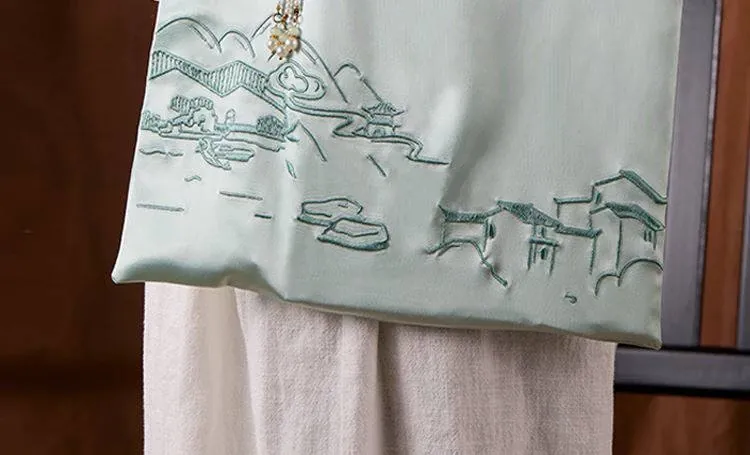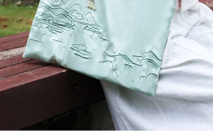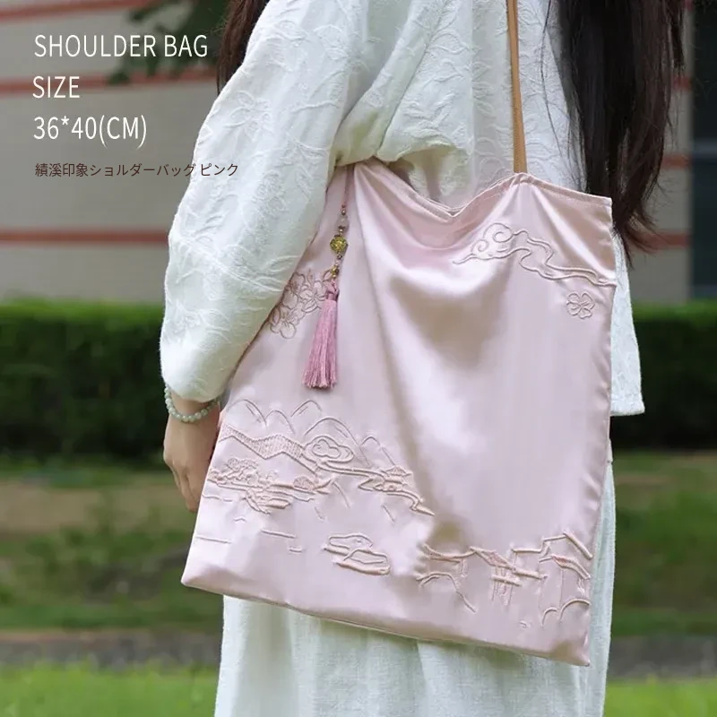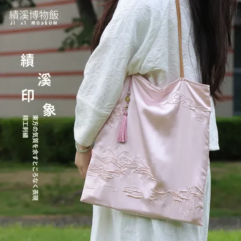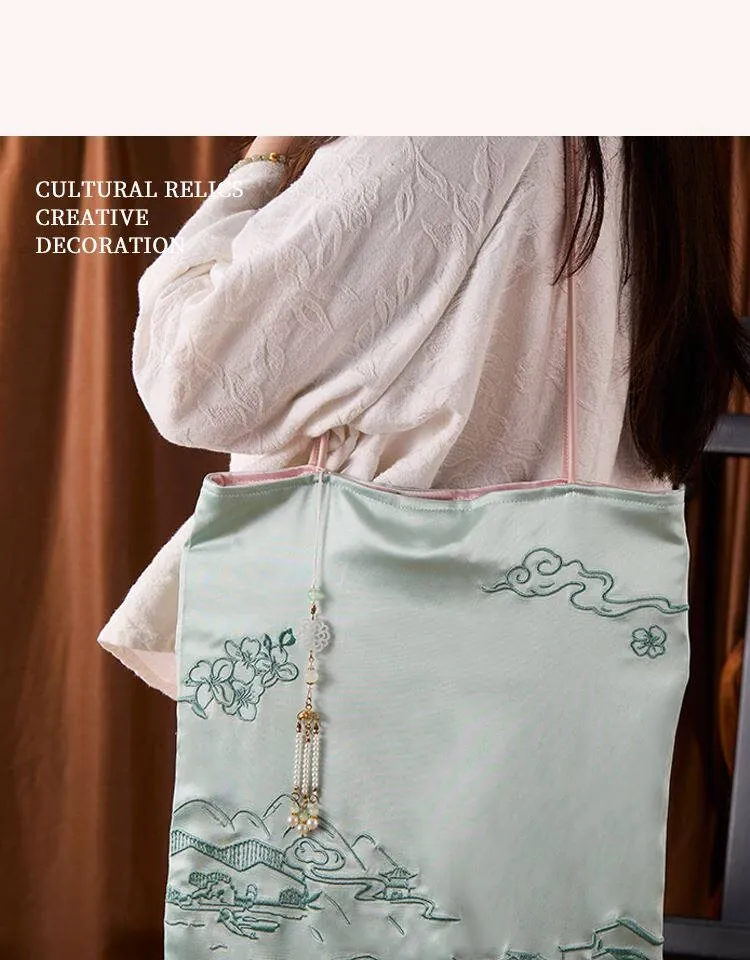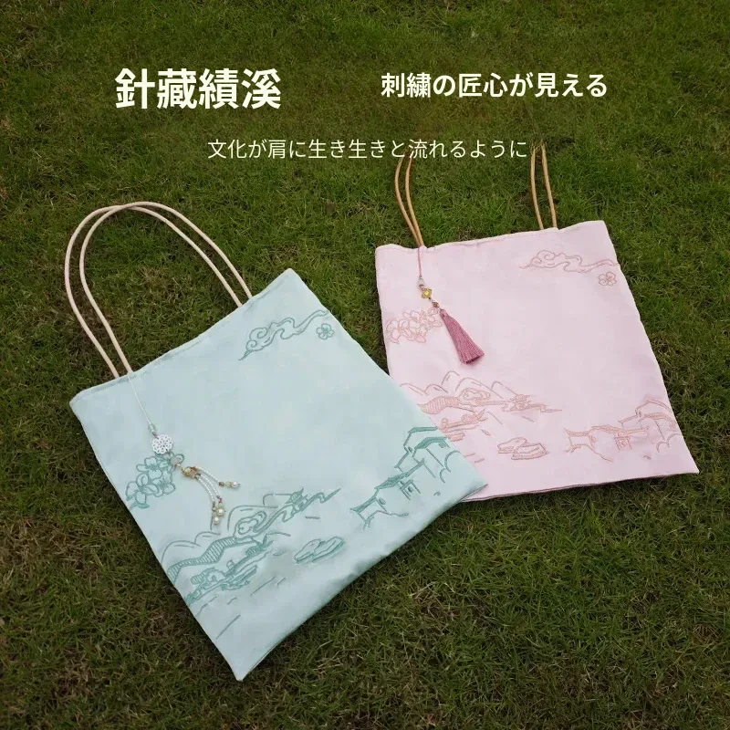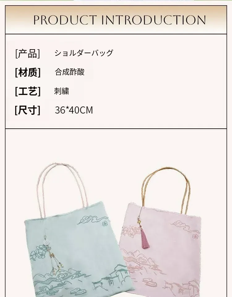新中式文創刺繡バッグ - 手提・斜め掛け・ショルダーにもなる多機能デザイン!国風刺繡で上品な印象を演出。友達への贈り物や特別な日のギフトにも最適!