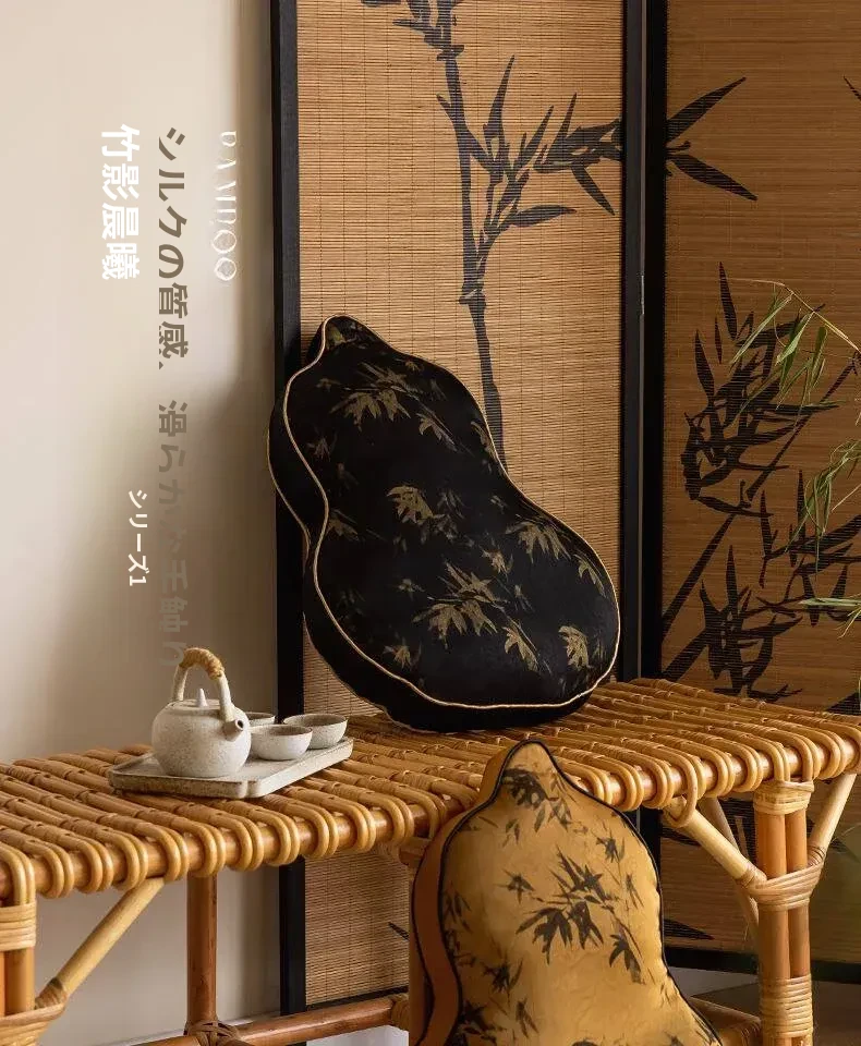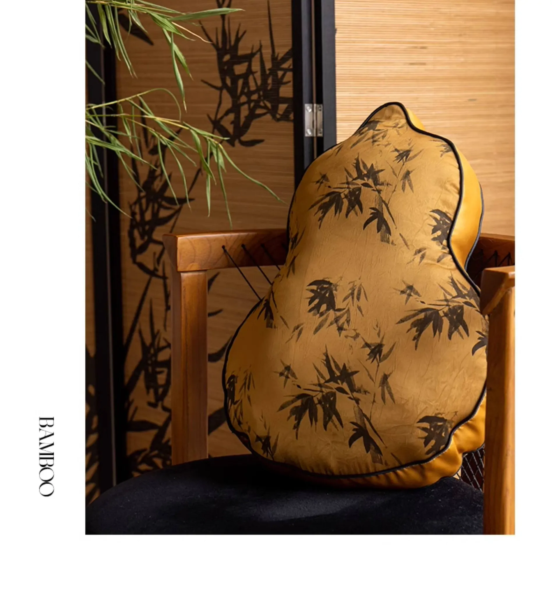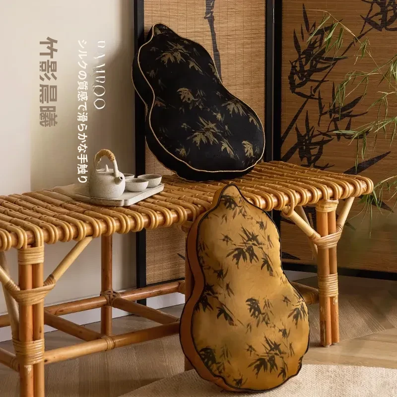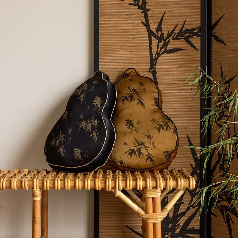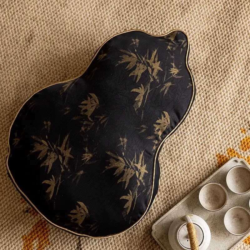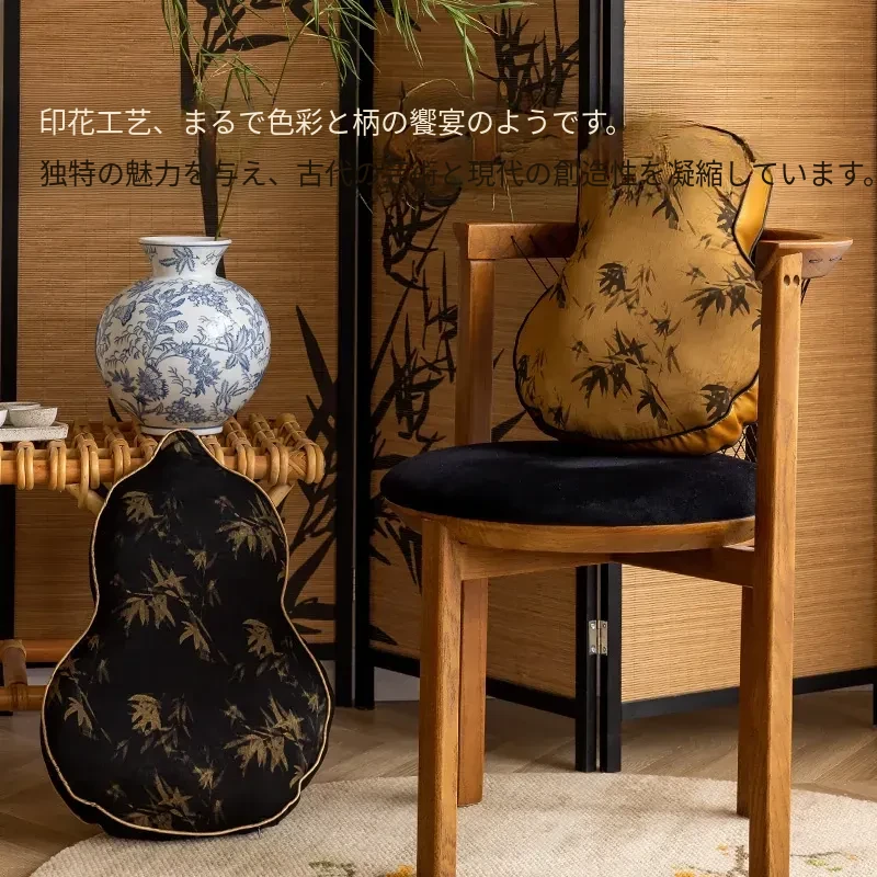 新中式デザインのユニークなひょうたん型クッション - ブラックソファ用、リビングルームにぴったり!中国風のスタイルで、クッションと腰当ての役割を兼ね備えた、心地よいサポートを提供します。