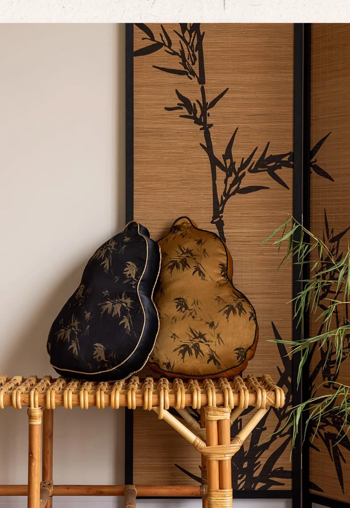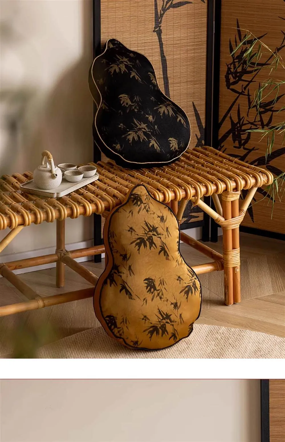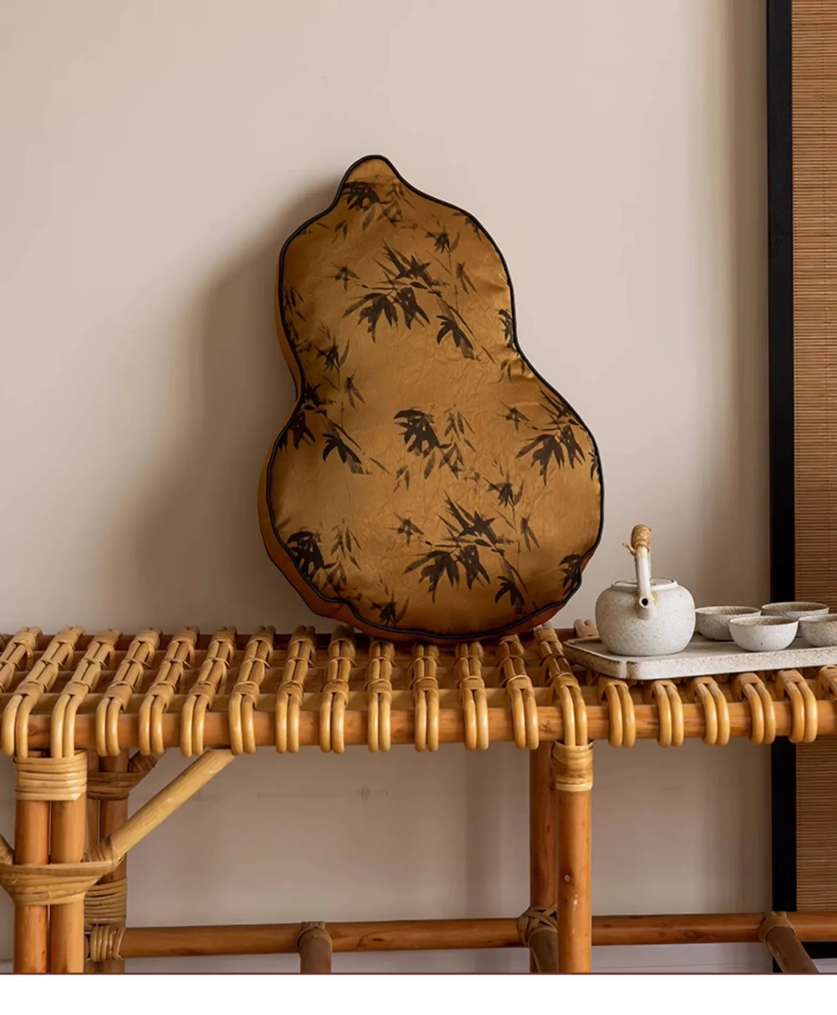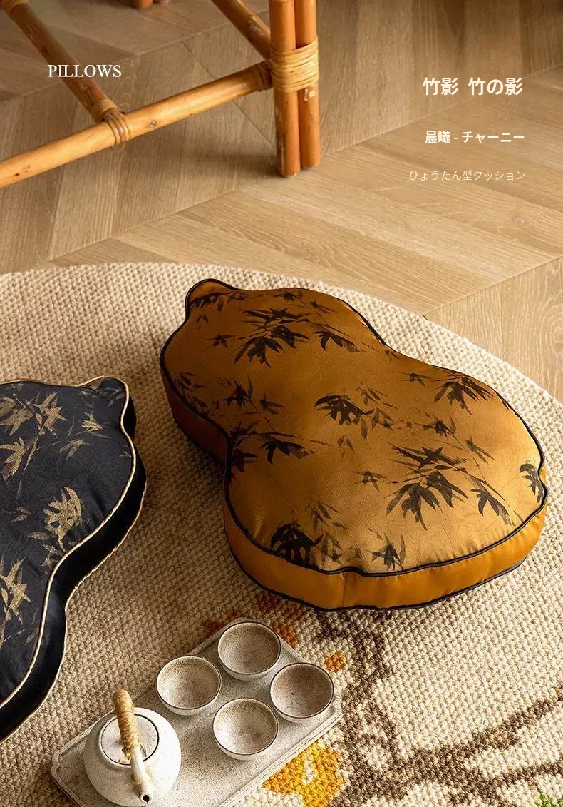新中式デザインのユニークなひょうたん型クッション - ブラックソファ用、リビングルームにぴったり!中国風のスタイルで、クッションと腰当ての役割を兼ね備えた、心地よいサポートを提供します。
