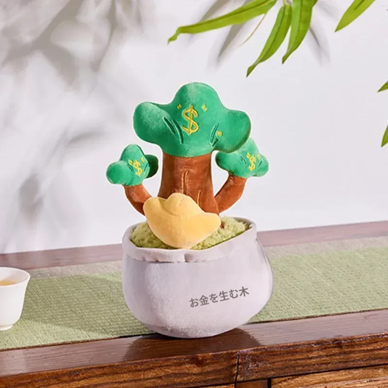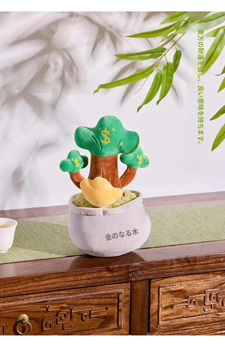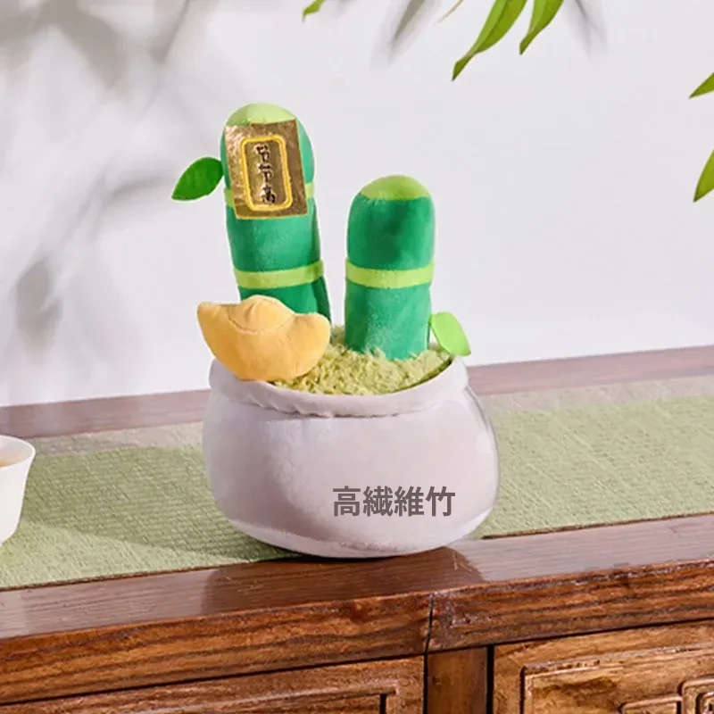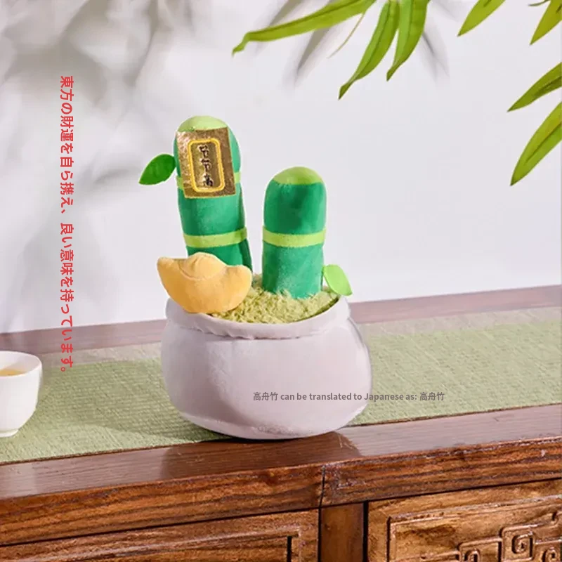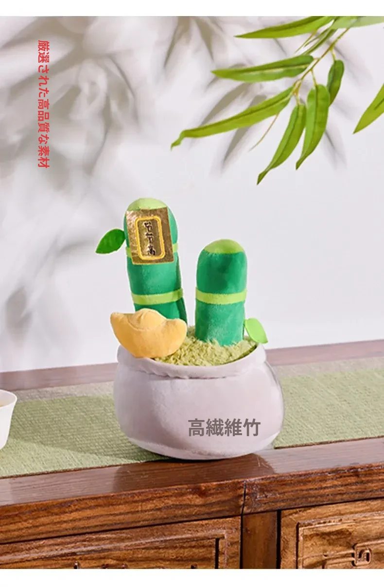 新中式の金運を呼ぶパキラのぬいぐるみ - 高升竹の飾り付きリアルな盆栽風デコレーション、書斎や茶室にぴったりなクリエイティブなインテリアアイテム!