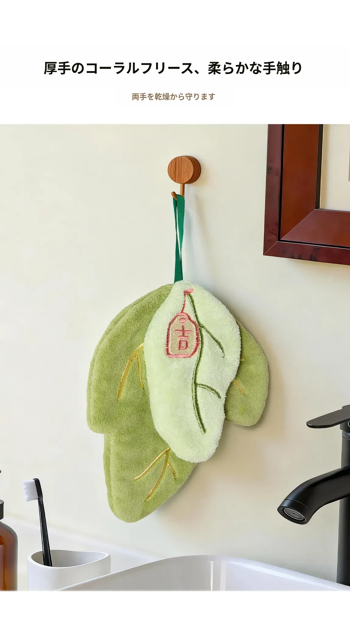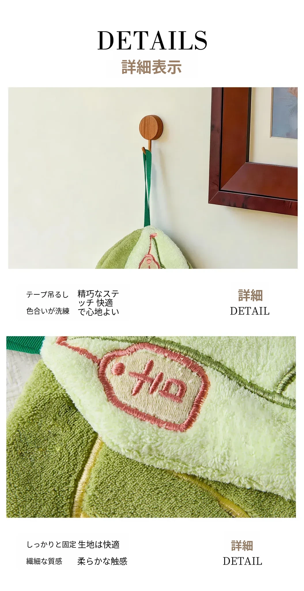 高級刺繍キッチン専用ハンドタオル 子供用ハンカチ 小型タオル 吊り下げ式 かわいいデザイン 超吸水・厚手バスルーム用