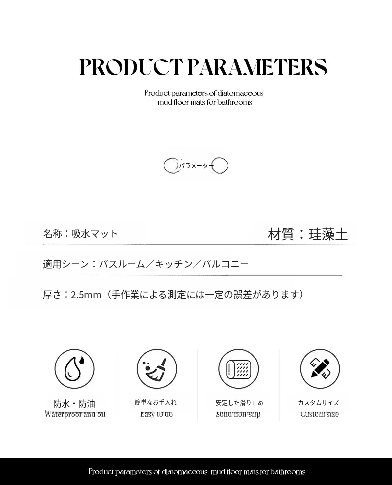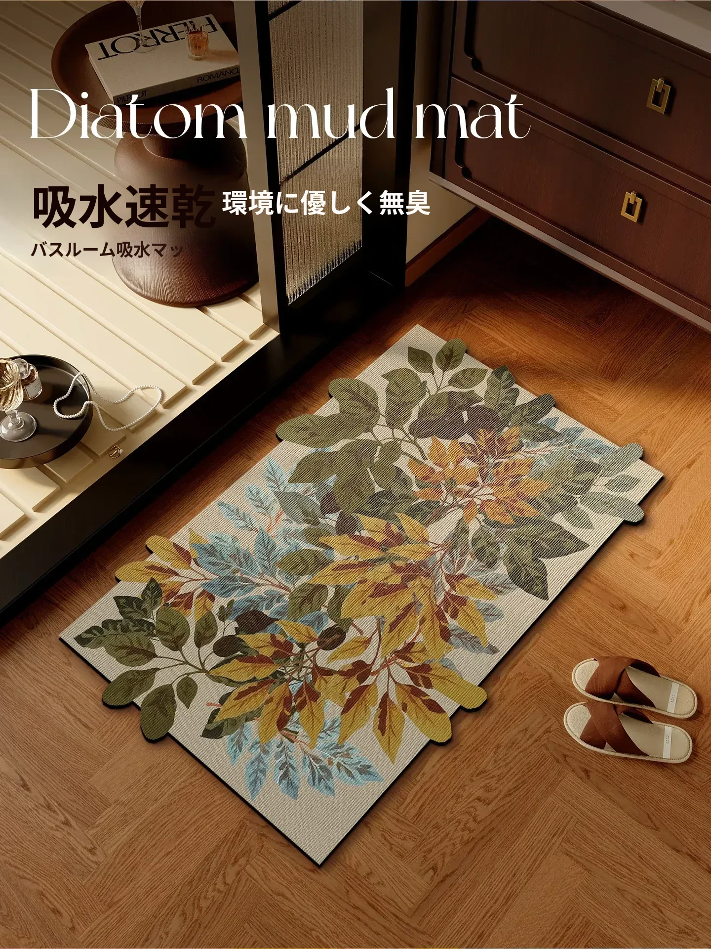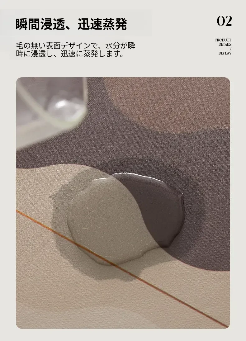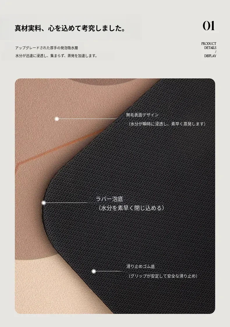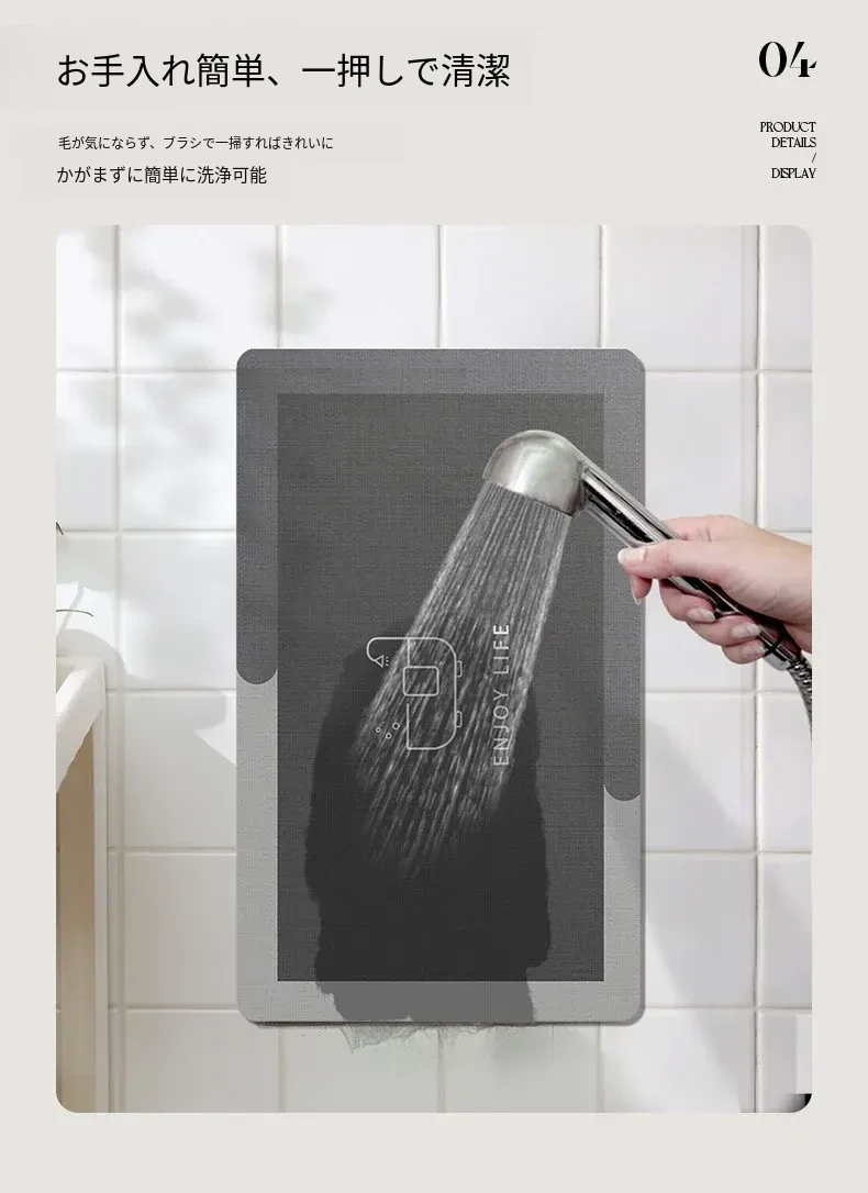 高級感あふれる浴室用吸水速乾シリカ泥マット - トイレや洗面所に最適な清潔感あるドアマット!洗いやすく、足元を快適に保つ優れたデザイン!