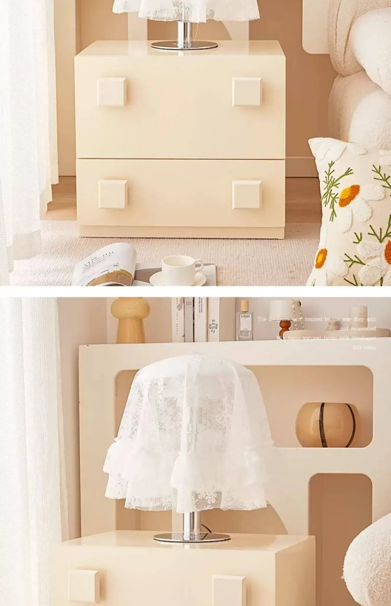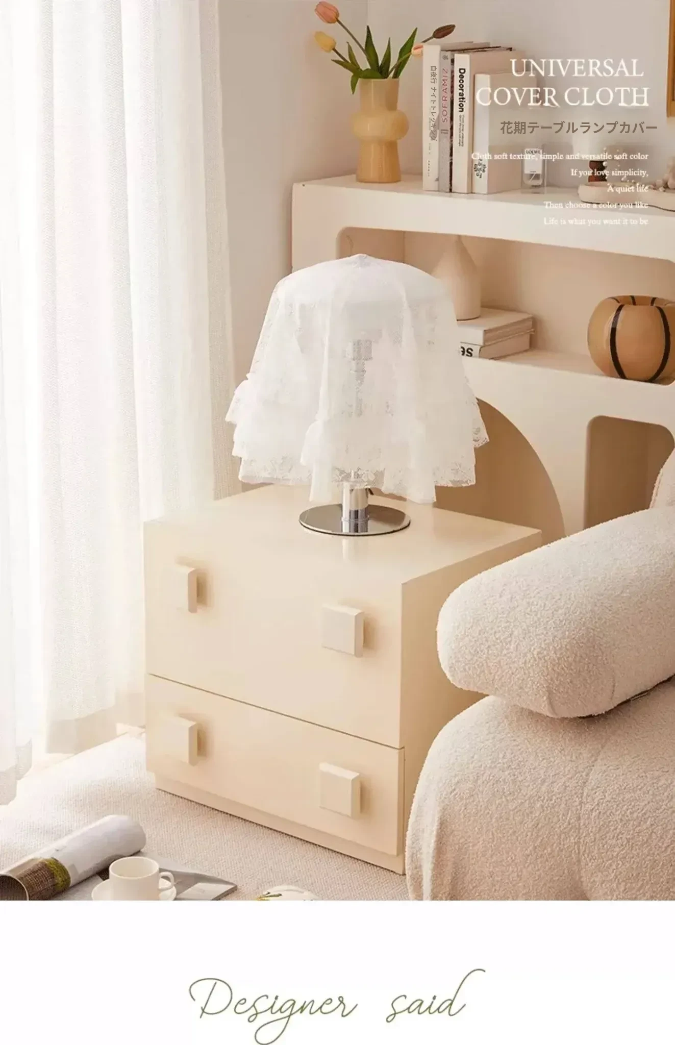 おしゃれな円形テーブルランプ用レースカバー - 家電やティーセットを守る万能防塵カバー。インテリアを引き立てるデザインで、ホコリから大切なアイテムをしっかりガードします!