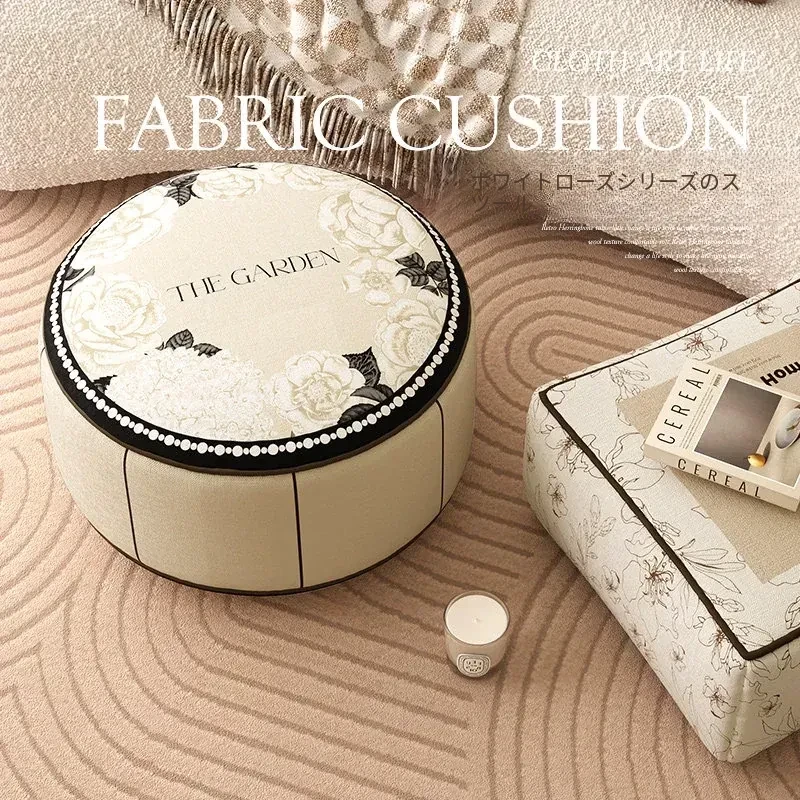 アメリカンスタイルのクッション・ラグ|リビングにぴったりなリラックスソファ用フットスツール|フレンチシックな高級感漂うおしゃれなクッション