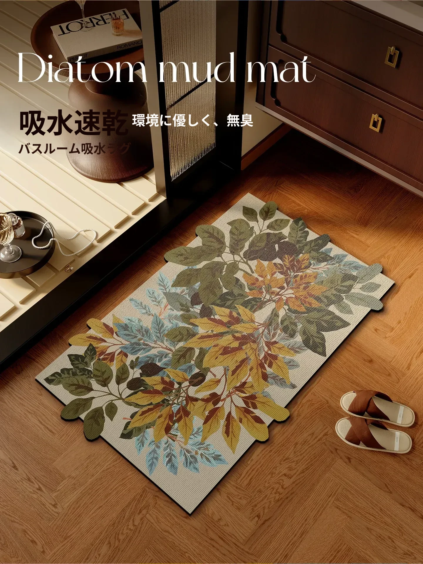 カスタマイズ可能!汚れに強い玄関用スリッパマット - 家庭用滑り止めマット、入ってすぐの大門に最適!おしゃれで実用的なデザインで、毎日の出入りを快適にサポートします。