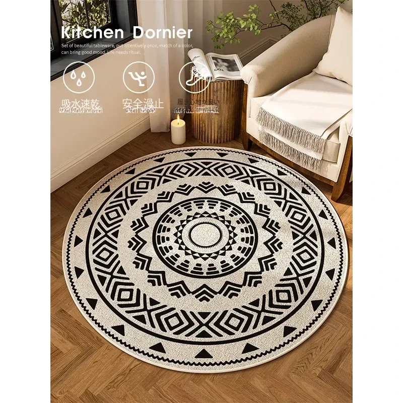 レトロなサークル型のロッキングチェアとテーブル、カーペット、書斎用のコンピューターチェアマット、ゲーミングチェア用の滑り止めマットを一つに!快適な作業環境を実現し、リラックスできる空間を作り出します。