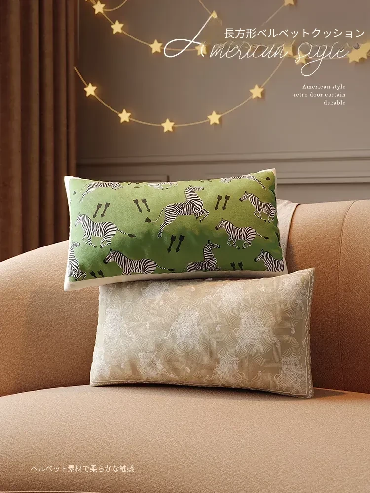 アメリカンスタイルの軽奢華ロングソファクッション|ベッド用腰枕・長方形・背もたれクッション|洗濯可能・カバーのみ(中身なし)|おしゃれな寝室に最適!